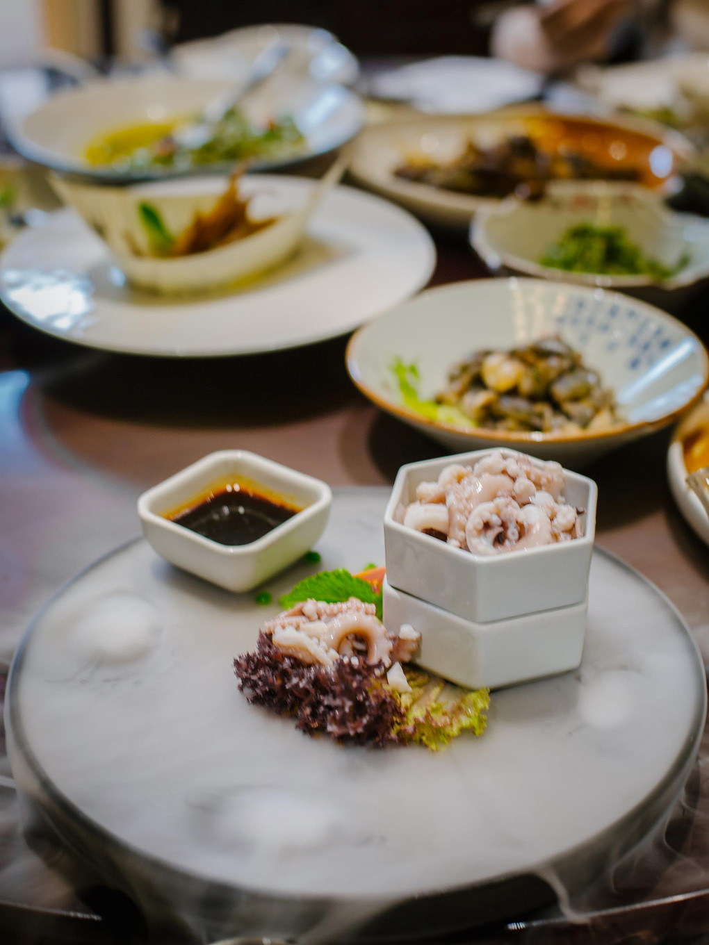 店内的爽脆章鱼也是必点的,不额外添加辅料,白灼捞出,鲜嫩爽脆,口感弹牙,辅以“精华”蘸料,真想再来一盘!