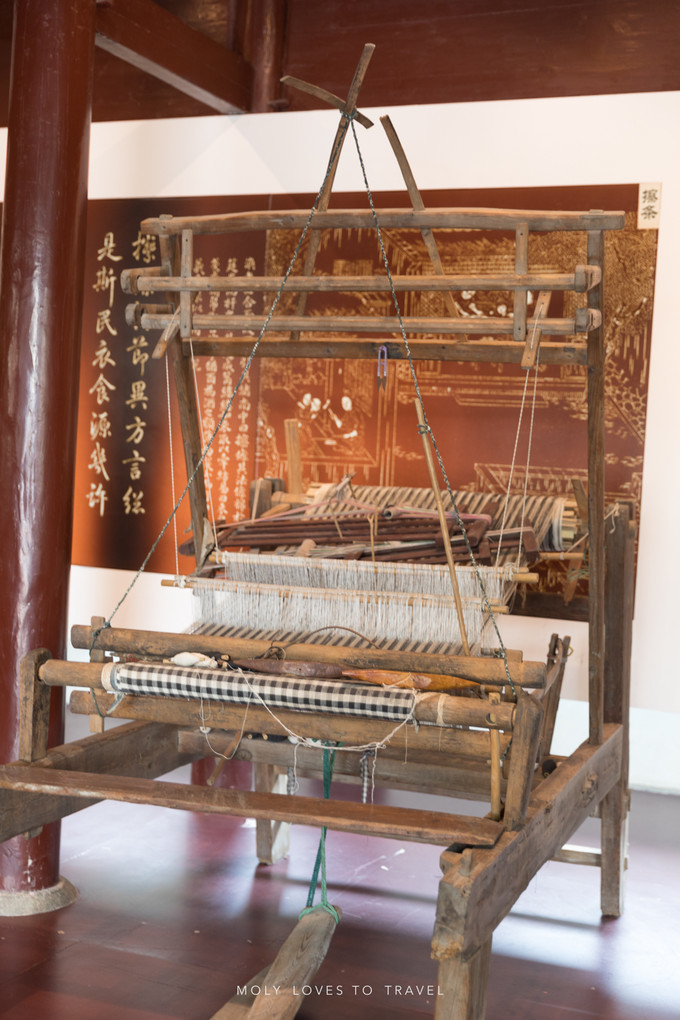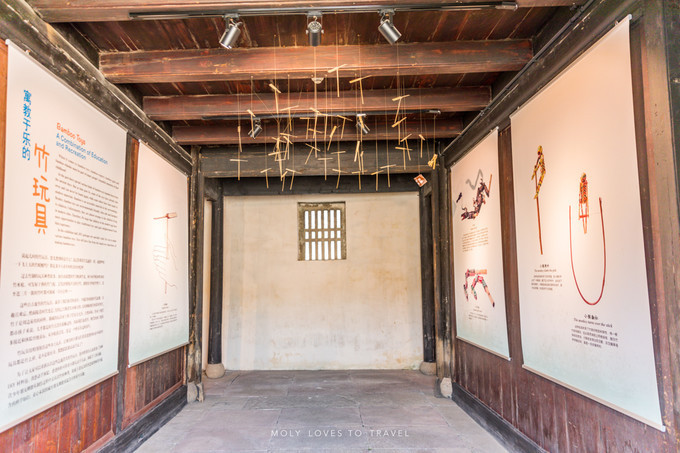 冯岳彩绘台门是母亲的艺术展馆所在地,共有六个展馆,分别是女红馆、刺绣馆、纺织馆、蓝印花布馆、中国结馆和传习馆。以上主题艺术展馆涵盖了国际顶级华人艺术大师们的精心之作。