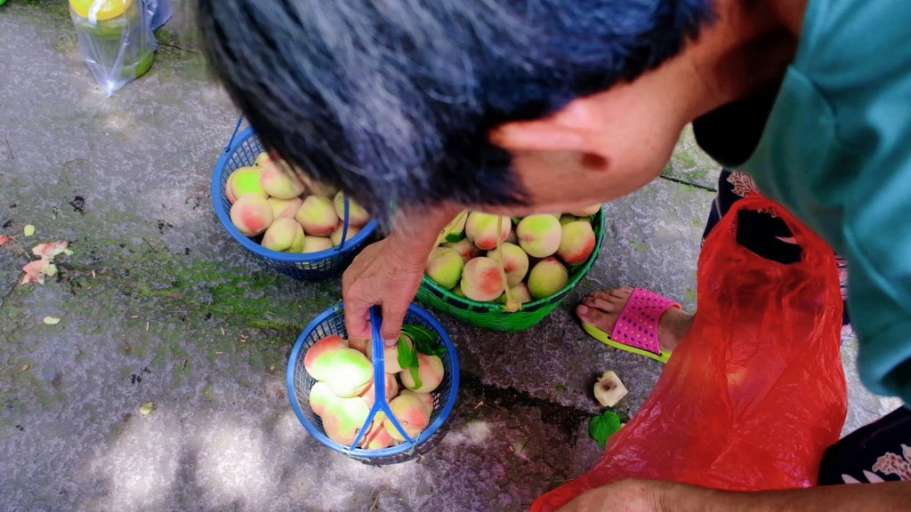 吃着当地村民们亲手摘的水蜜桃,不仅多汁,而且很甜,无公害,是城市比不了的生活。