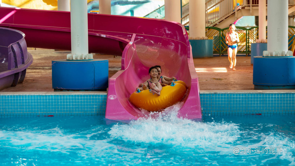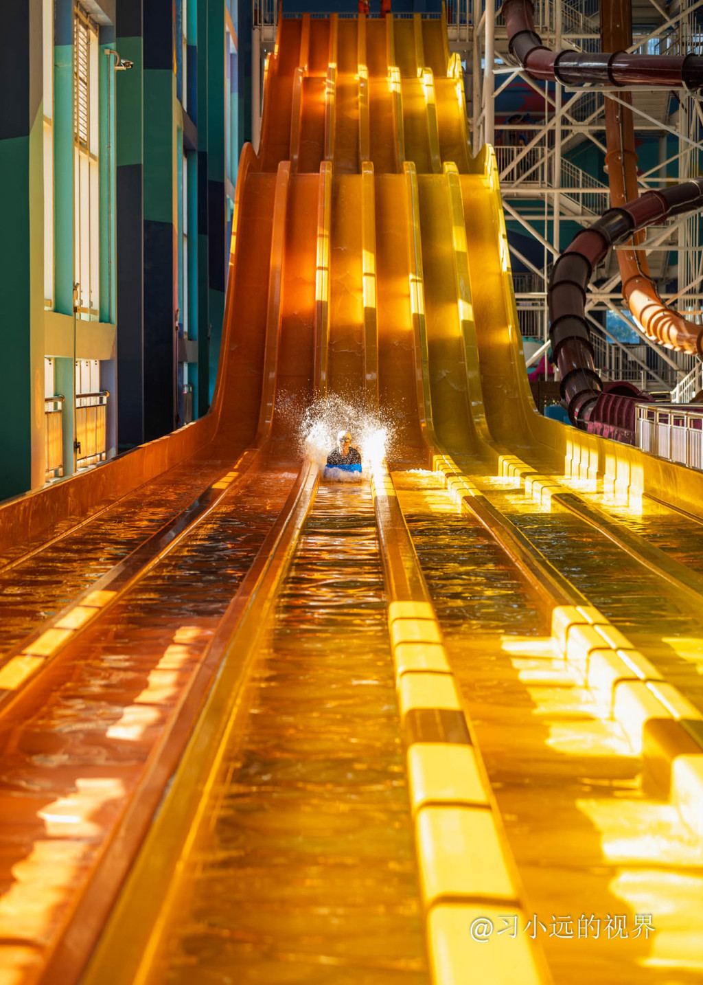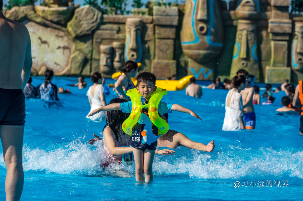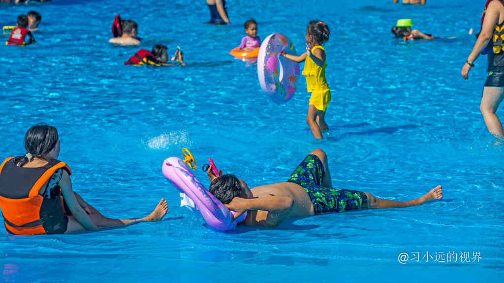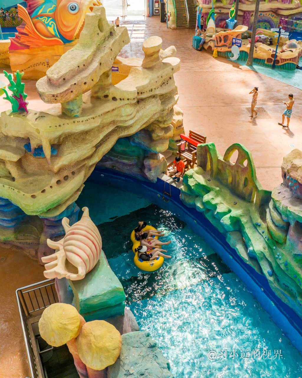 除了计较刺激的项目游玩抓拍之外,温和的滑道泡池什么的拍着就比较安静。 比如 带着道具去造浪池就能拍出在海边度假的感觉,或者在无边泳池,夏天的氛围感满满。