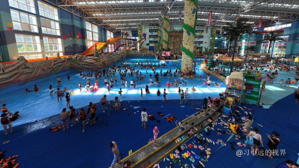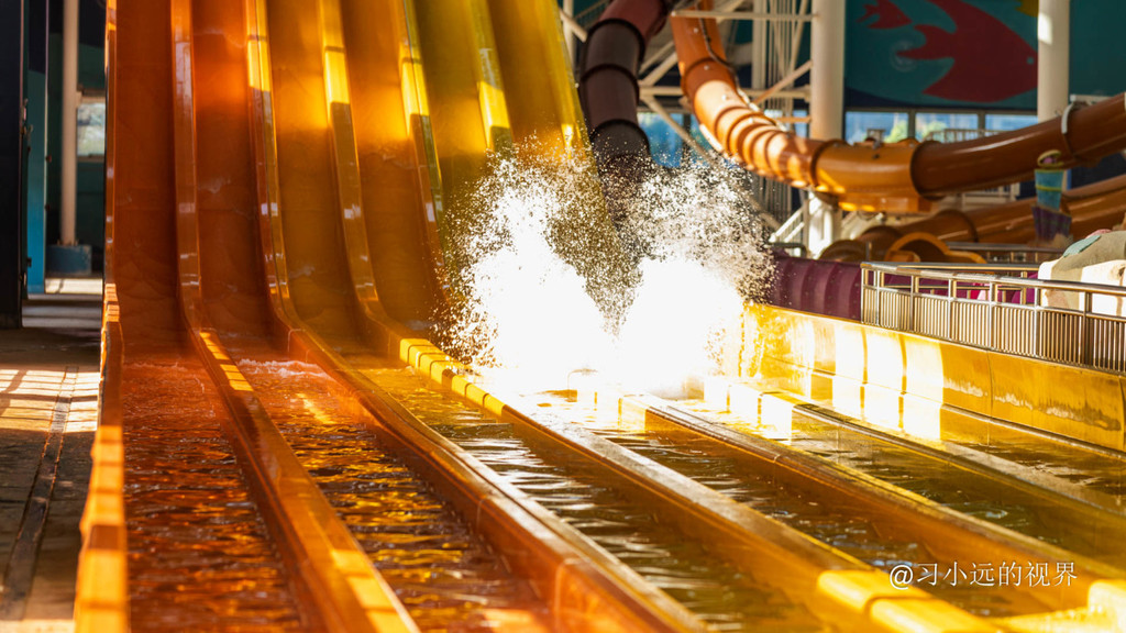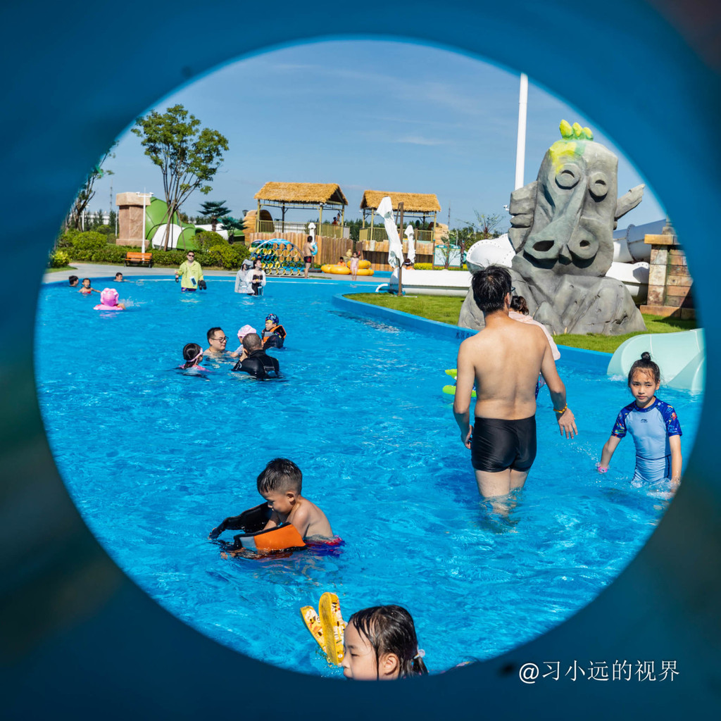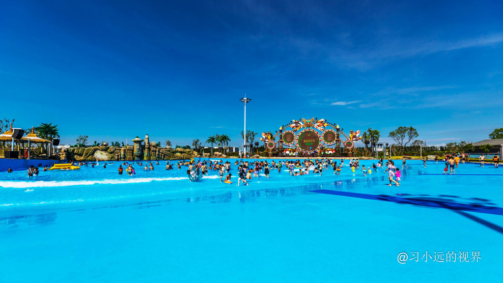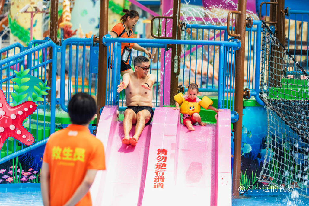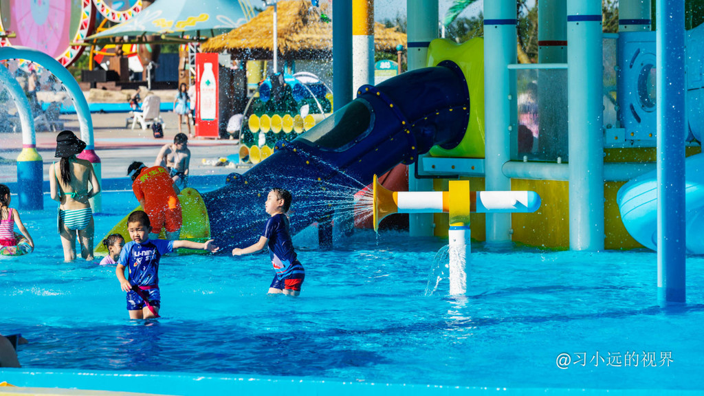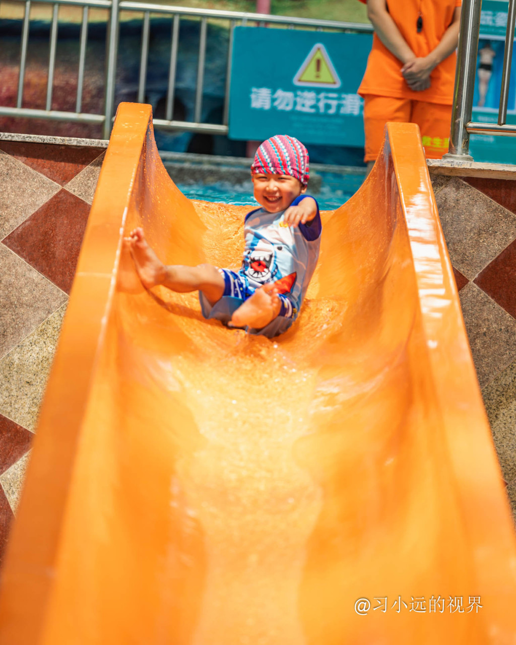 除了计较刺激的项目游玩抓拍之外,温和的滑道泡池什么的拍着就比较安静。 比如 带着道具去造浪池就能拍出在海边度假的感觉,或者在无边泳池,夏天的氛围感满满。
