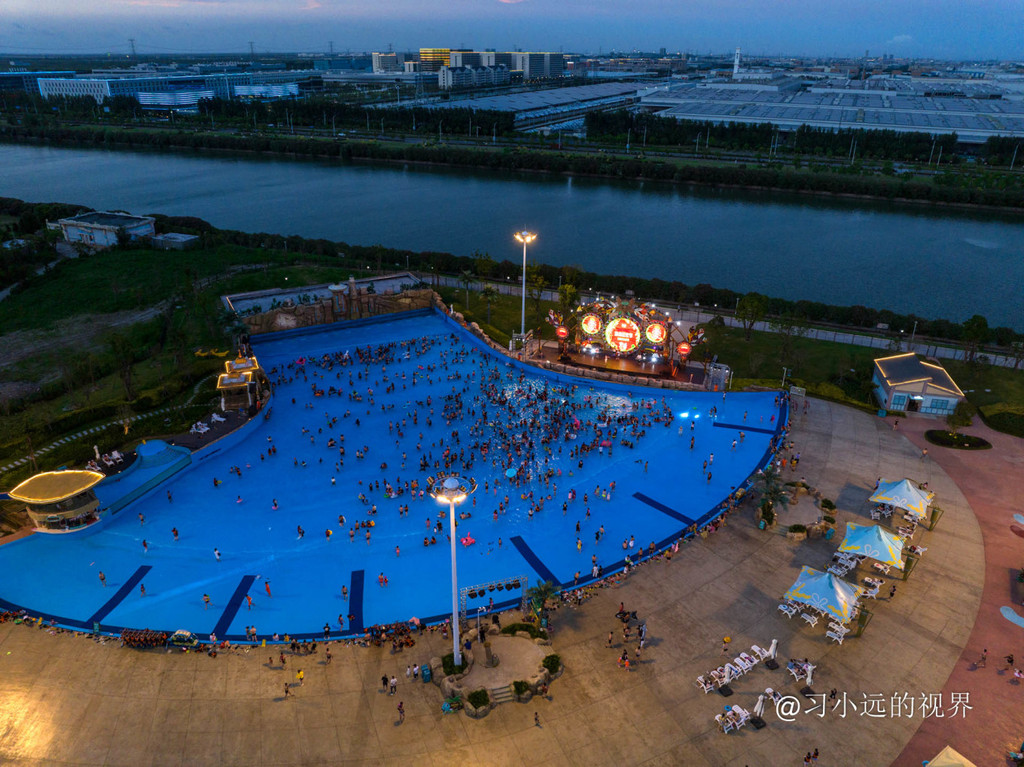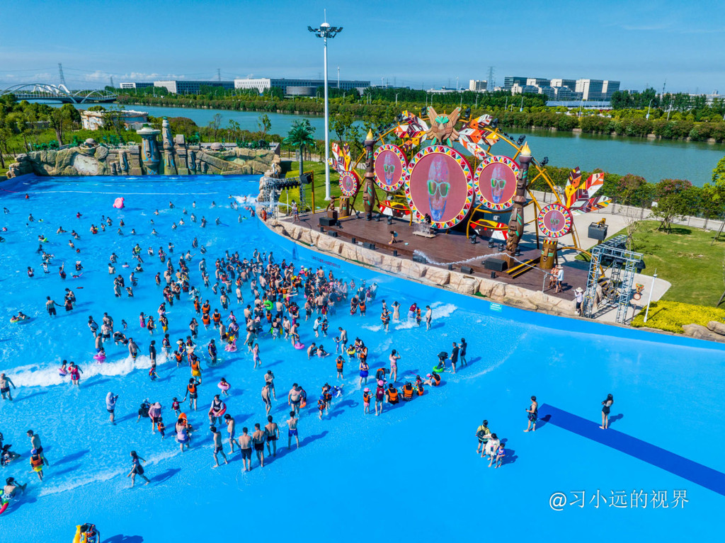 更热闹的是几乎每个造浪池边都会有一个DJ舞台,每到这里的表演开始的手就是造浪池最燃的时候了,舞蹈,音乐,水浪,加上狂嗨的人们,这地方就会瞬间的吸引周边的人聚集。无论是白天还是夜场都是焦点。
