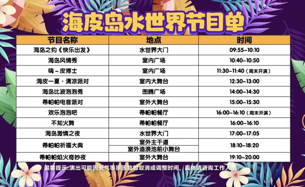 来海皮岛玩,想玩好就要合理安排好室外室内的项目,以及在中间会有不少节目表演穿插进来,感兴趣的可以关注一下他们的节目表演时间, 比如 小朋友喜欢的泡泡秀,造浪池边的蒂帕帕电音派对,海岛激情之夜。