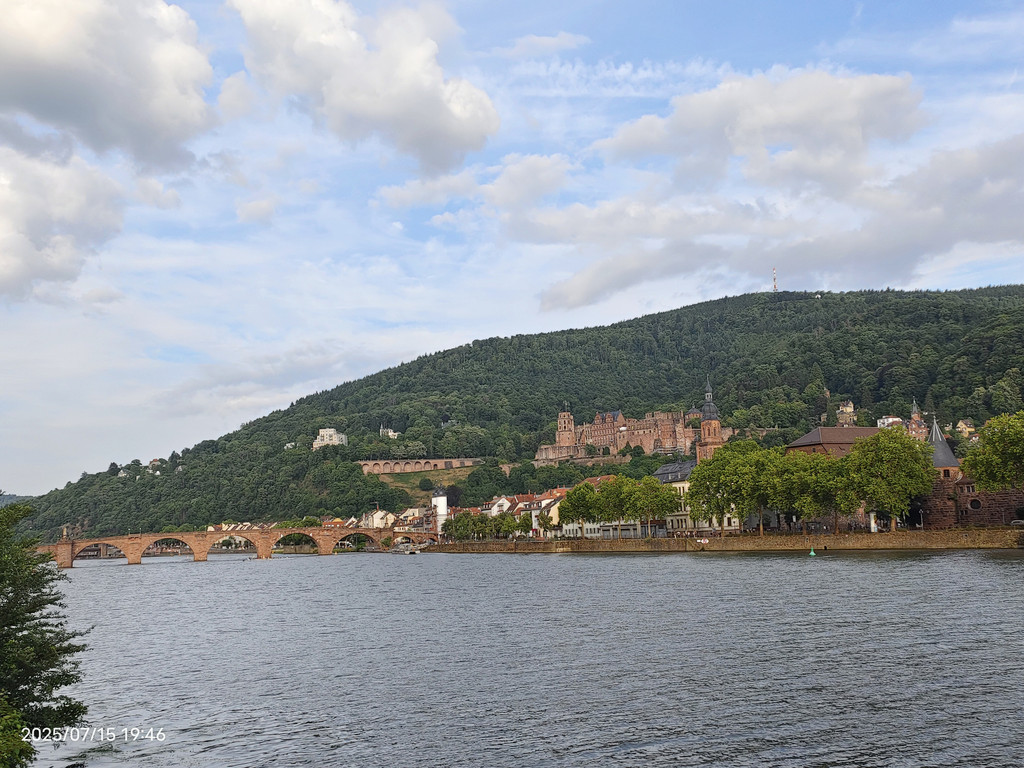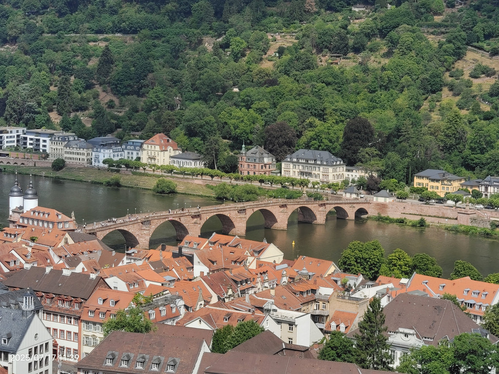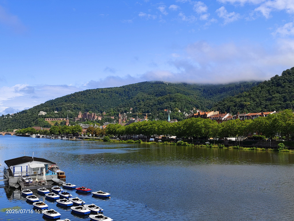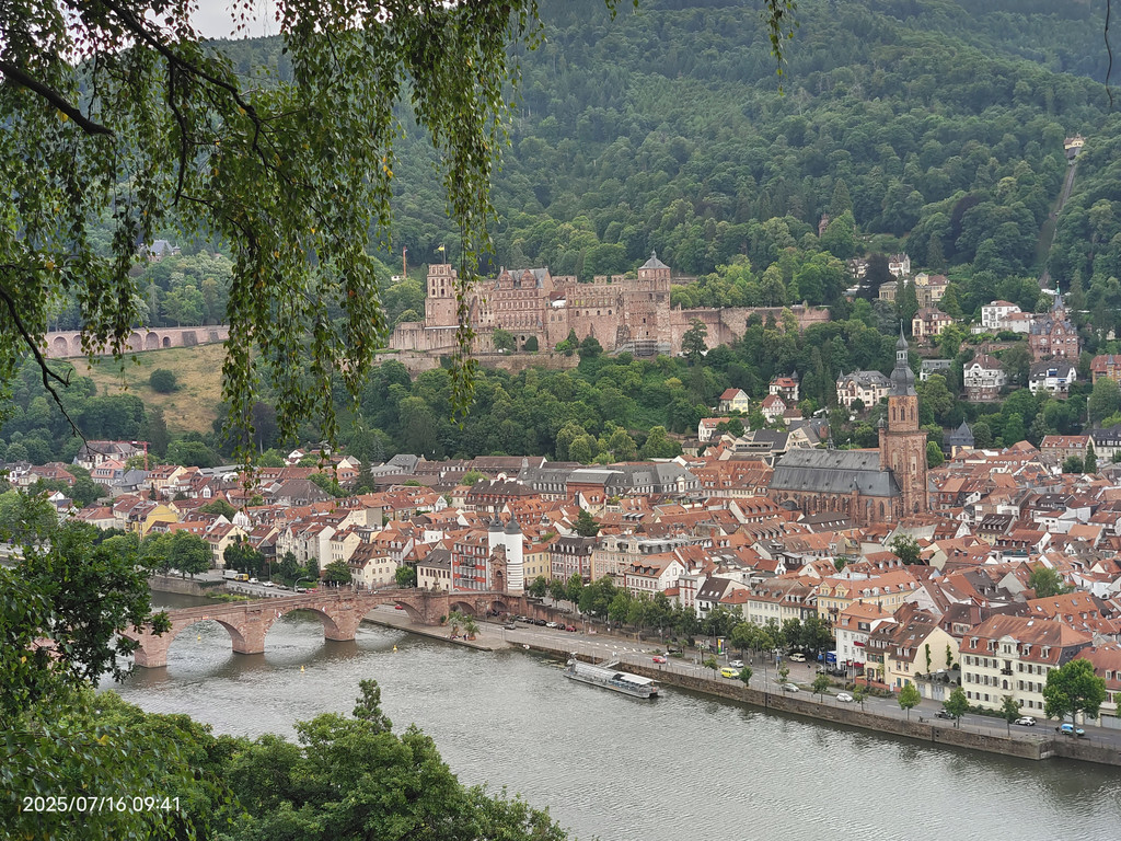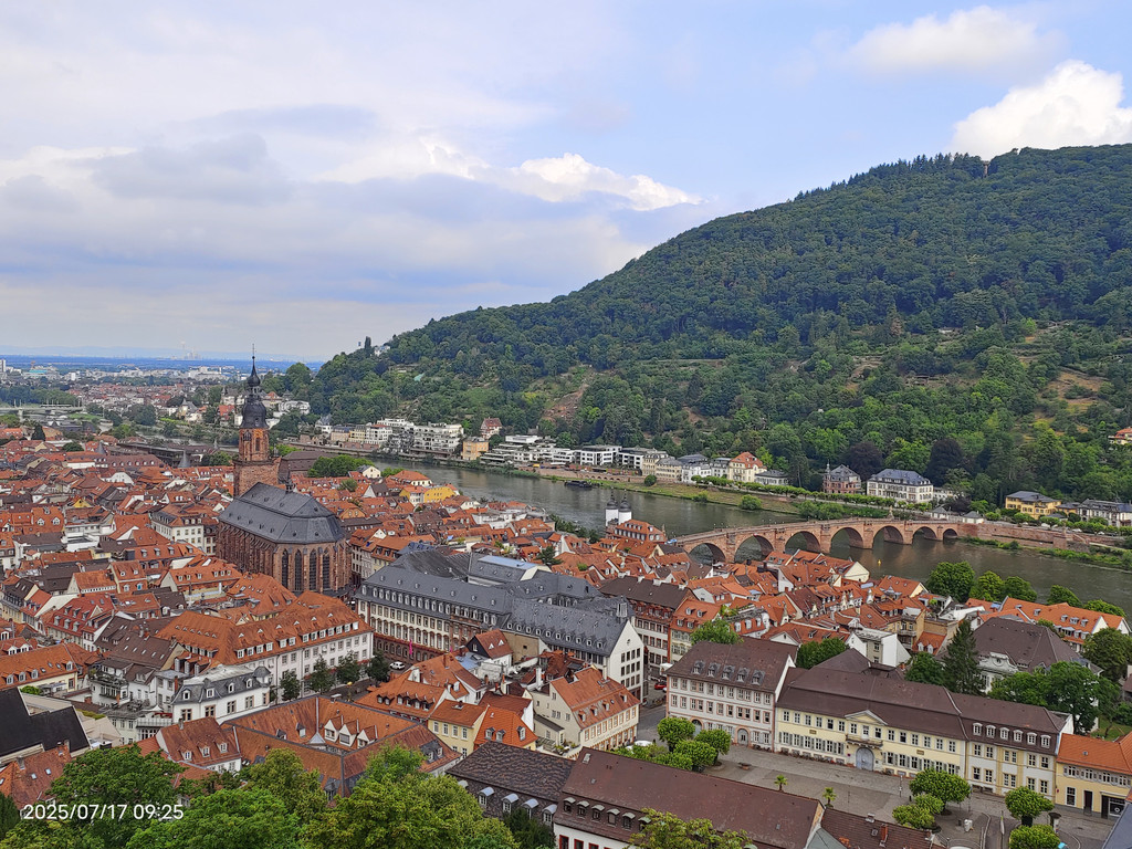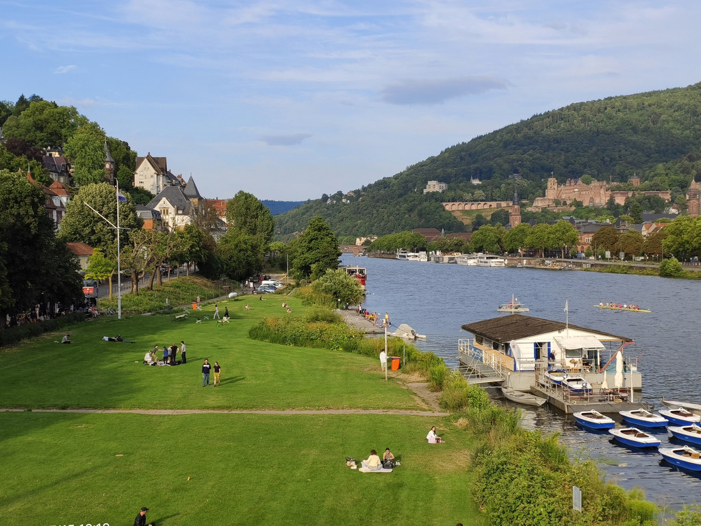 明媚阳光下,放眼望去,河对岸的老城和海德堡城堡尽收眼底。