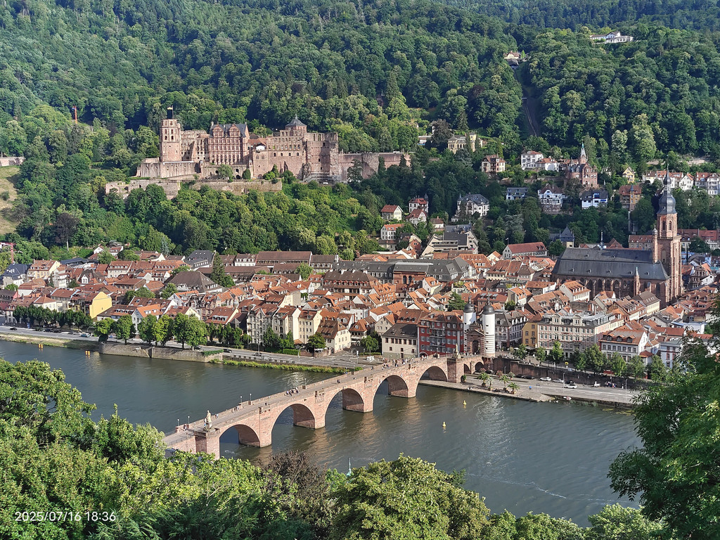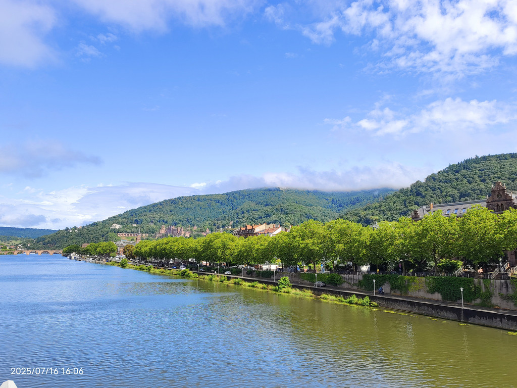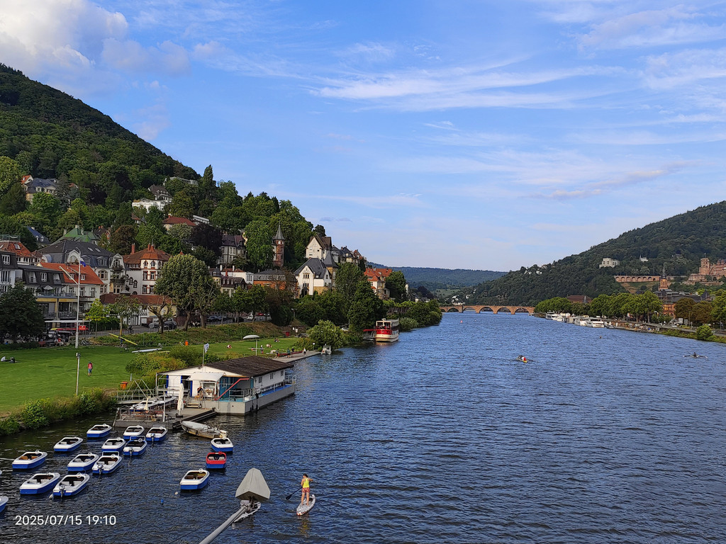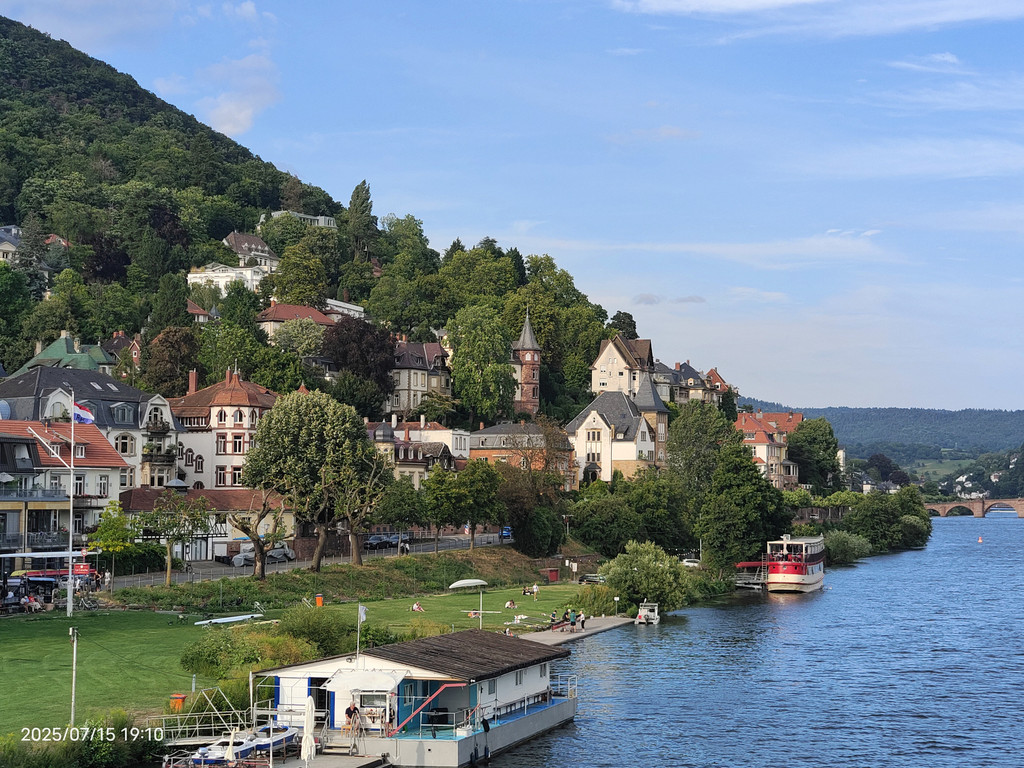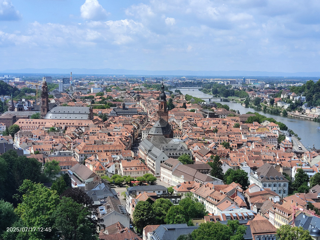 明媚阳光下,放眼望去,河对岸的老城和海德堡城堡尽收眼底。