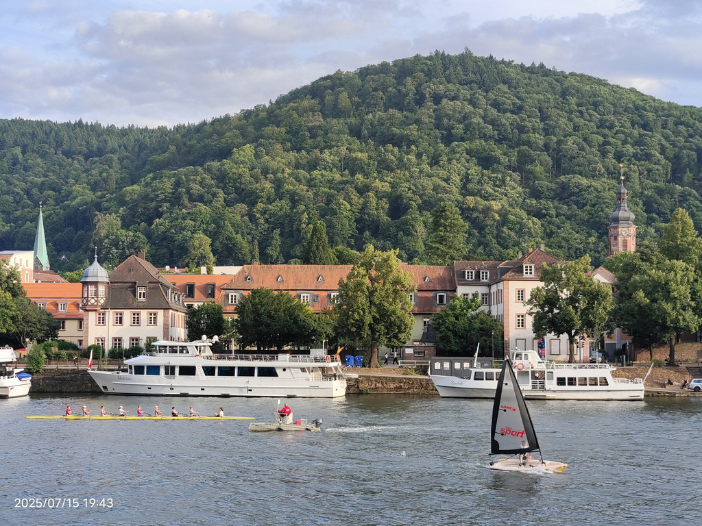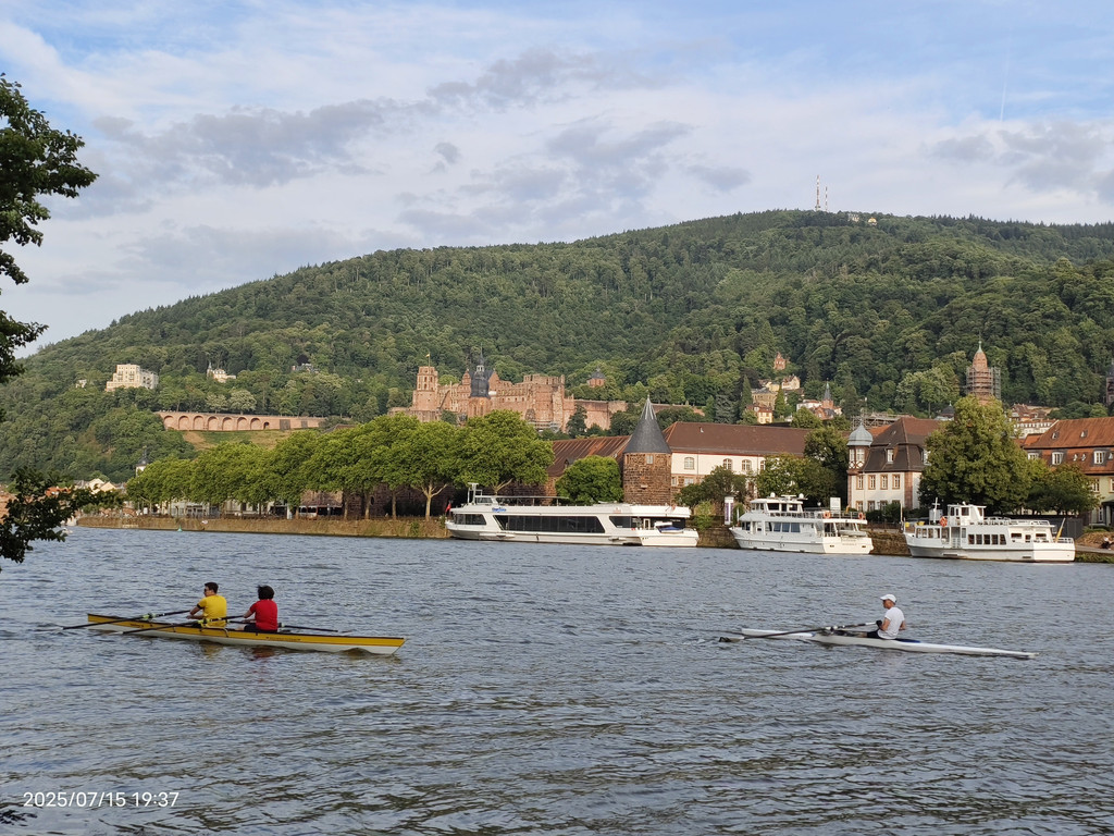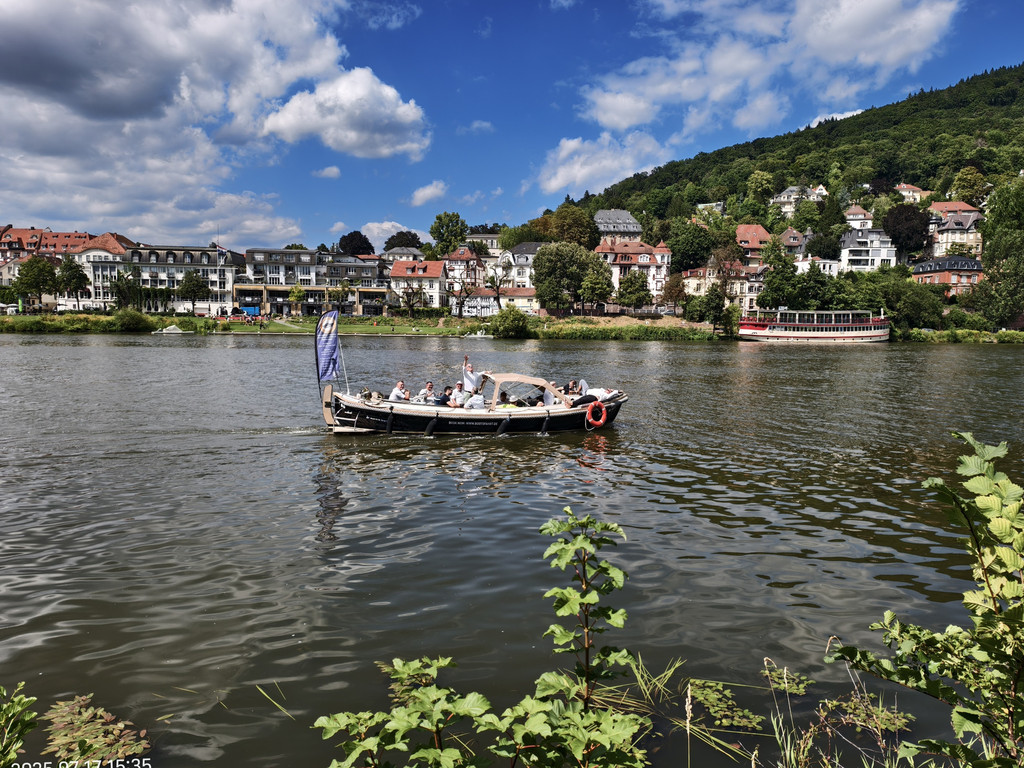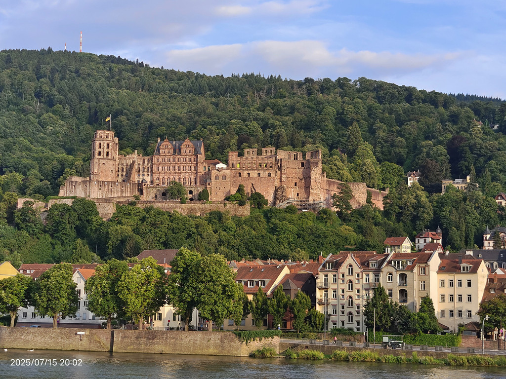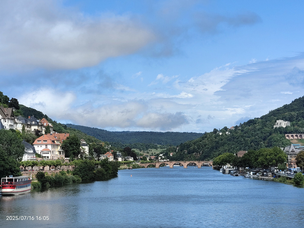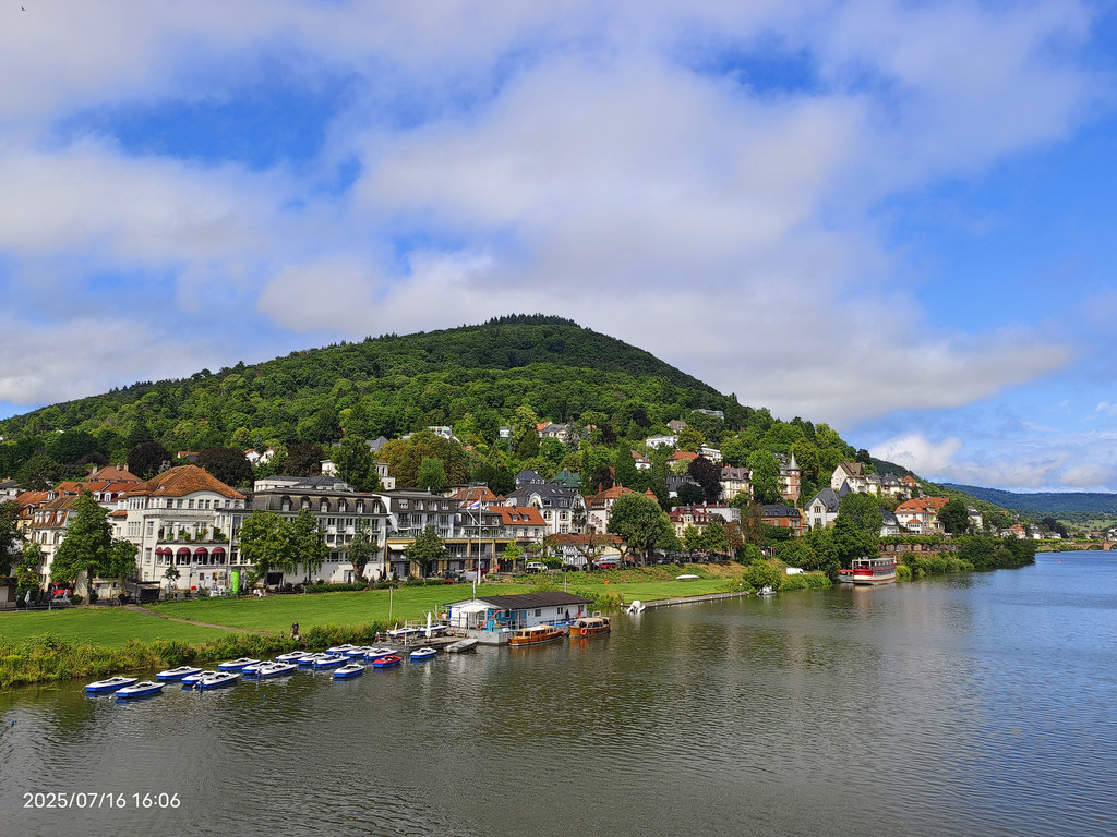 明媚阳光下,放眼望去,河对岸的老城和海德堡城堡尽收眼底。