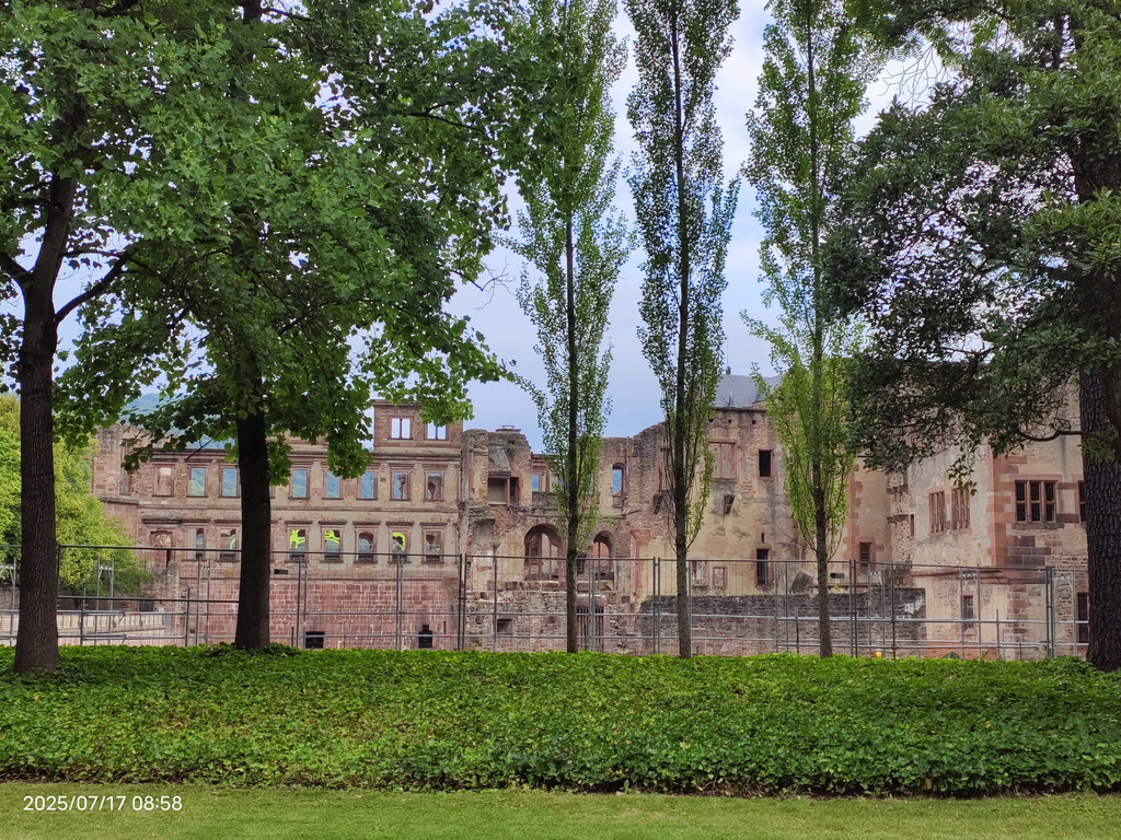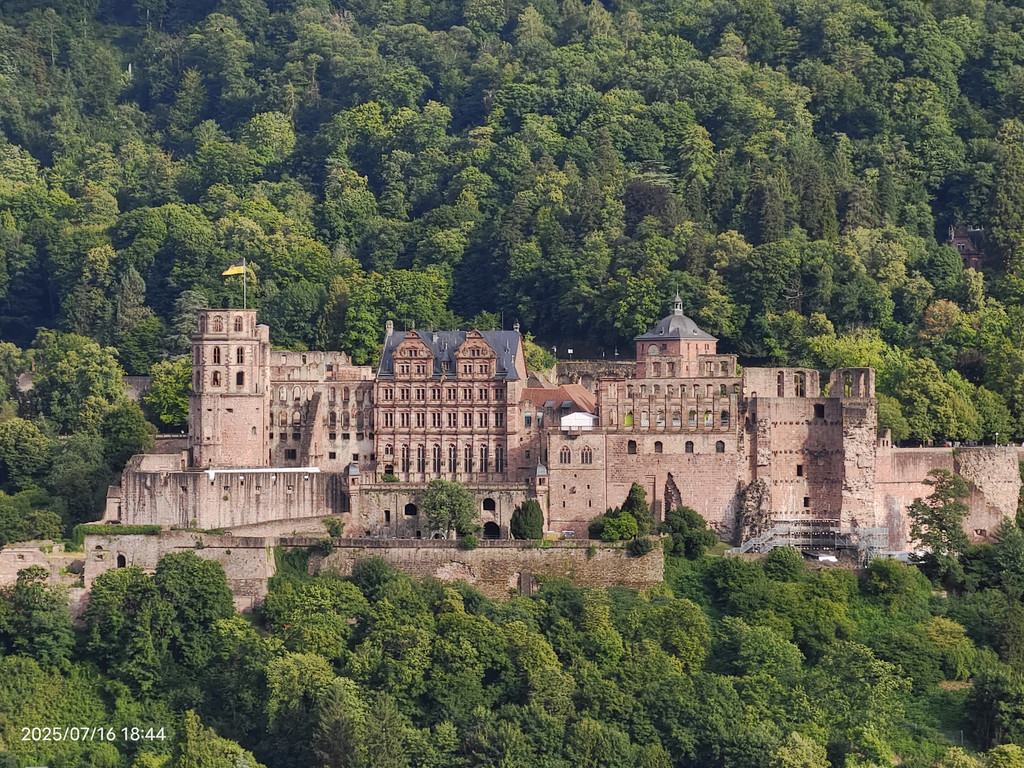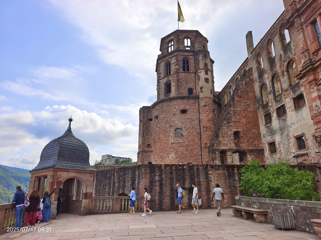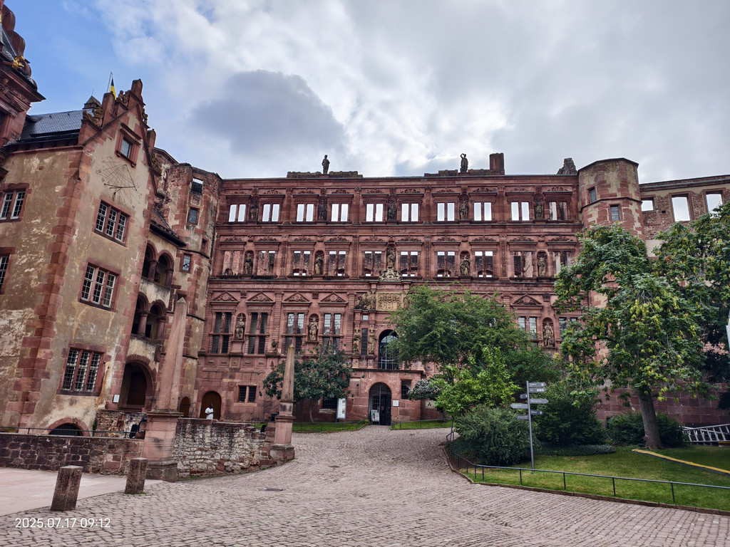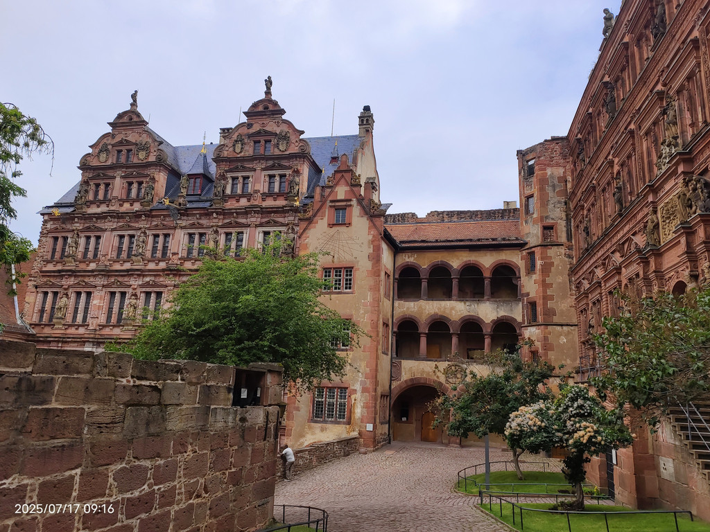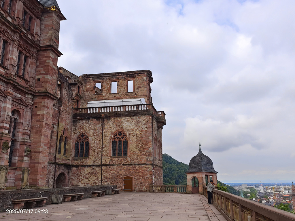 海德堡城堡在17世纪末的战争就被法国人摧毁了,现在大家看到的样貌,是后来重建的。