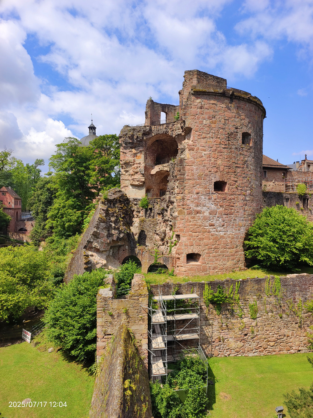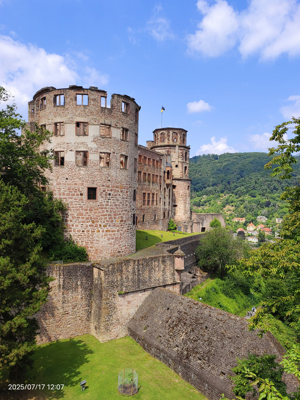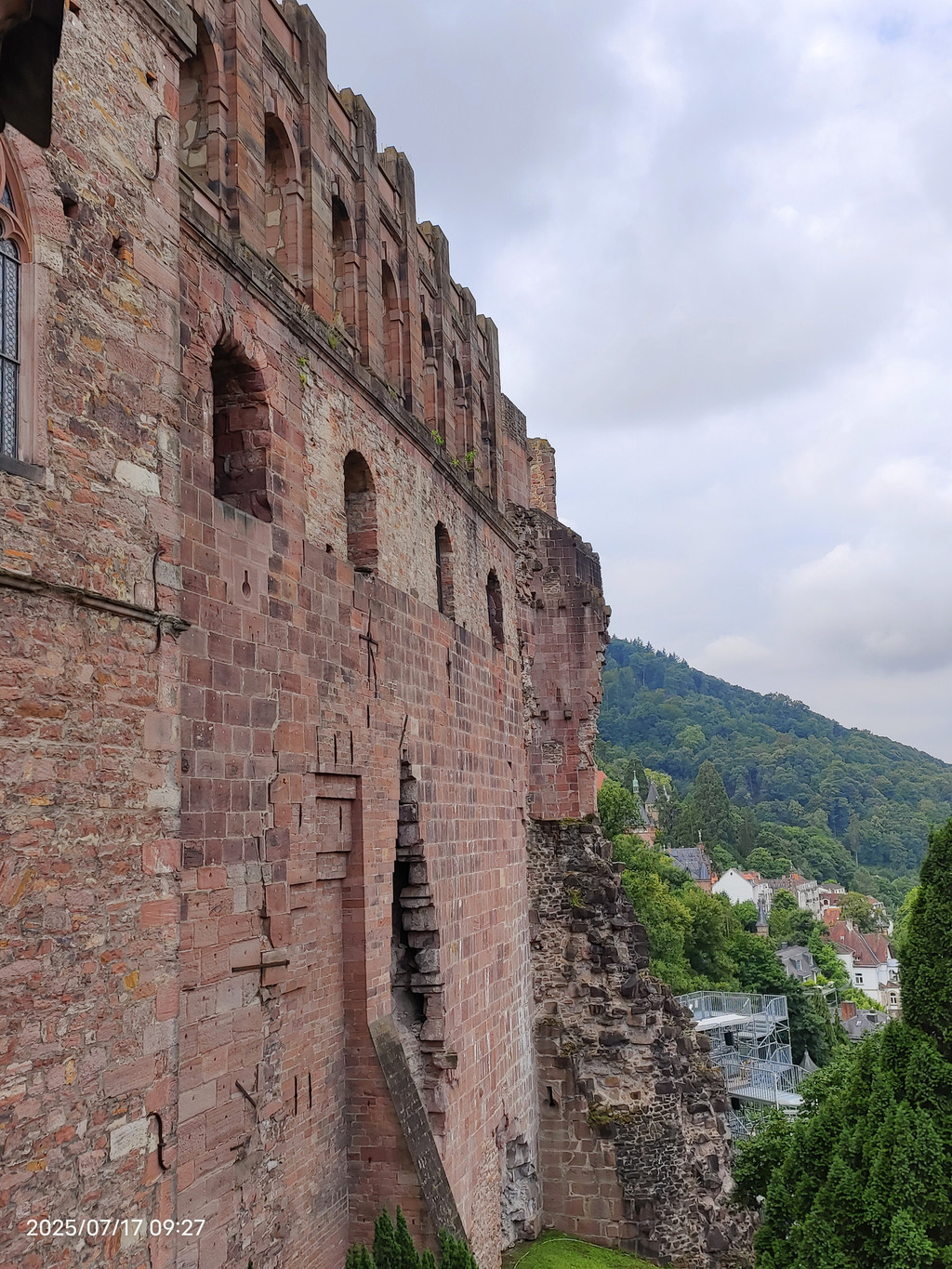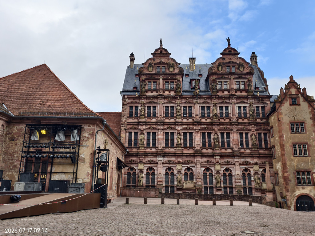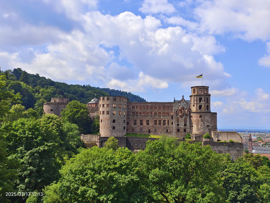 海德堡城堡在17世纪末的战争就被法国人摧毁了,现在大家看到的样貌,是后来重建的。