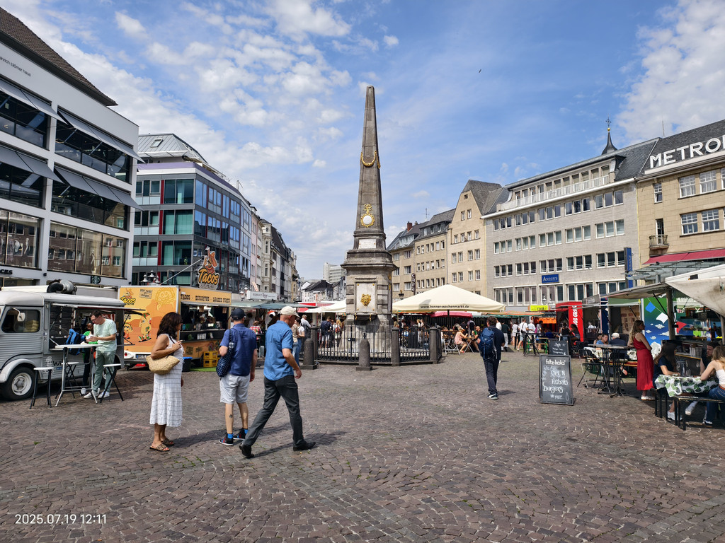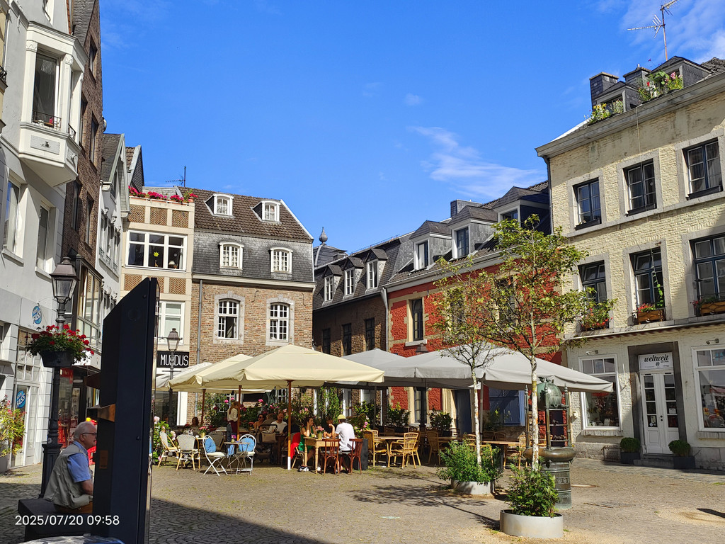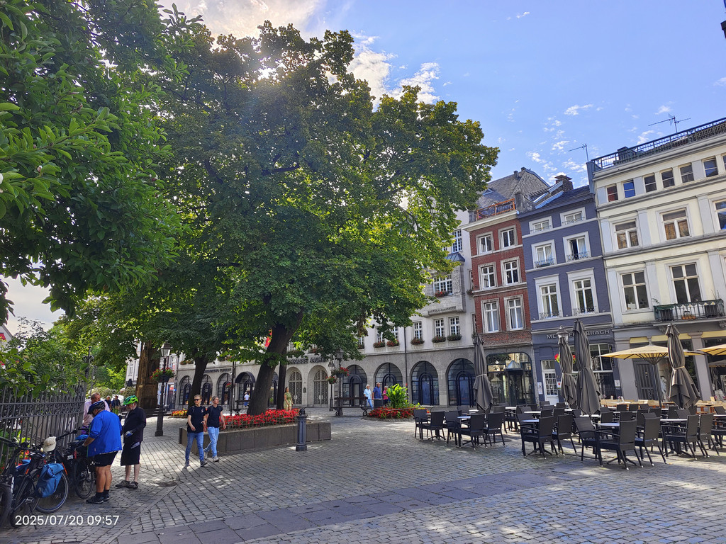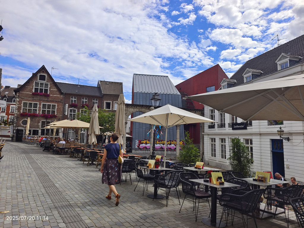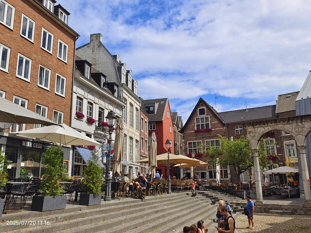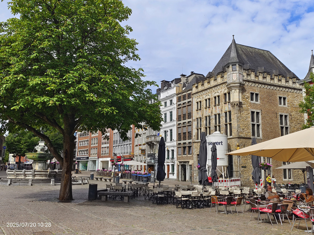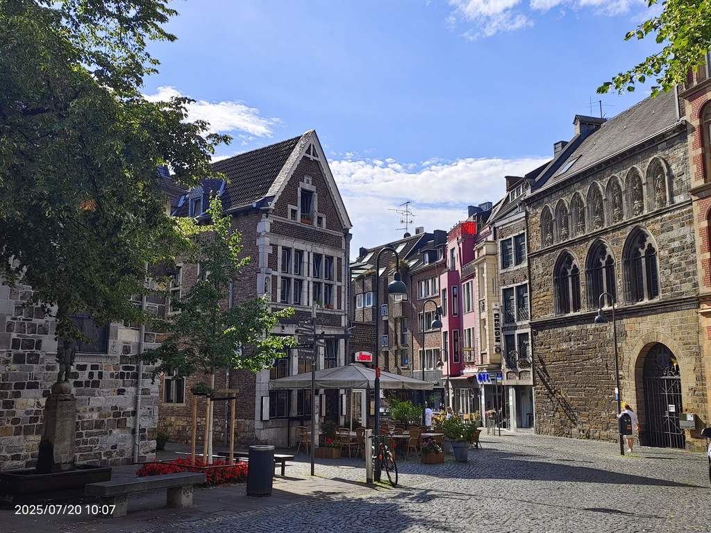 广场上的罗马柱廊静静地见证着这座城市的罗马历史。它隐匿于现代化的外墙之中,看似不起眼,但细细观察,却能发现一段辉煌历史的痕迹。重建的柱子散发着罗马建筑的韵味,提醒着我们亚琛这座城市的古老根基。历史的基座与庭院周围热闹的景象形成鲜明对比,美不胜收。