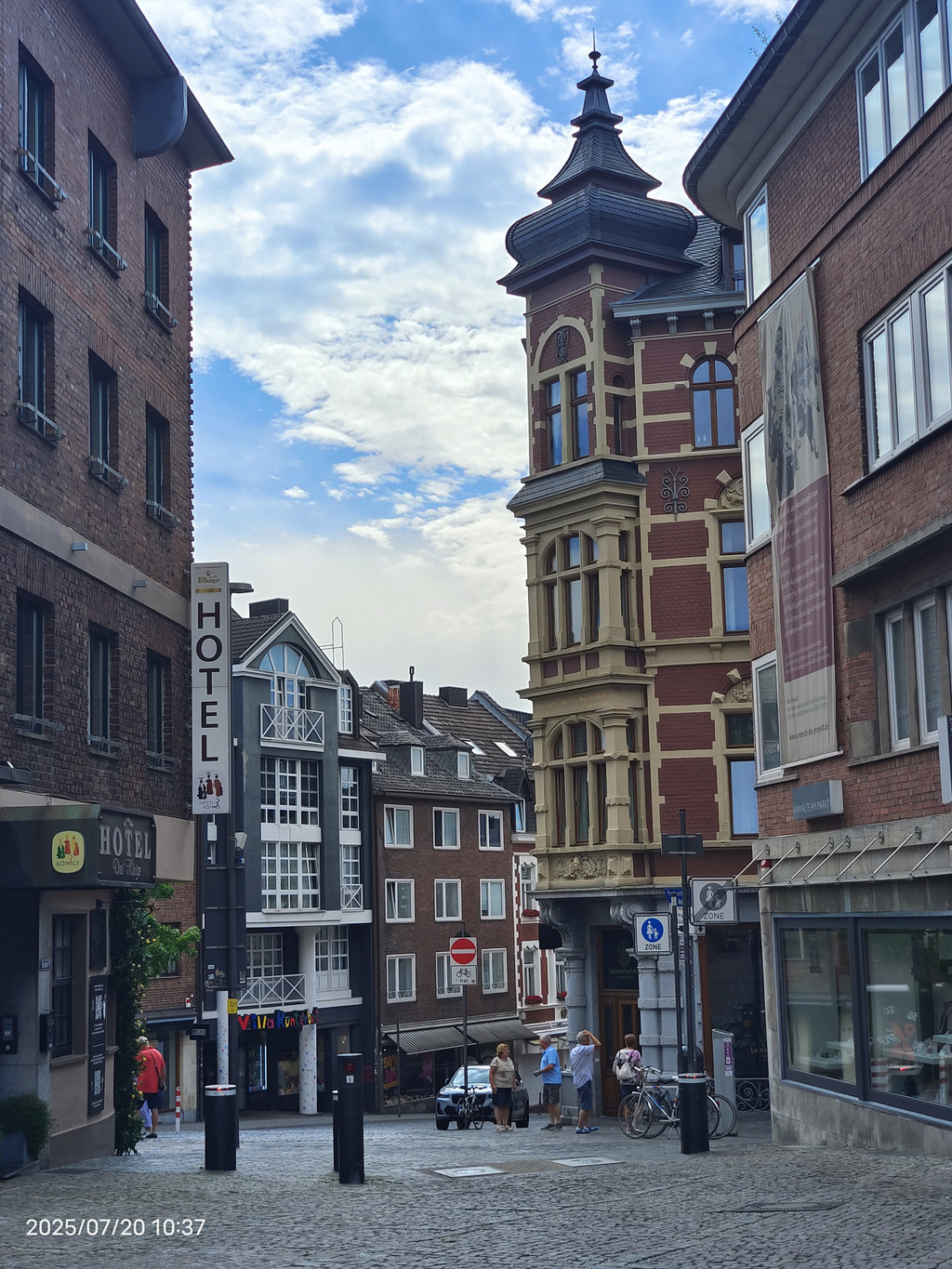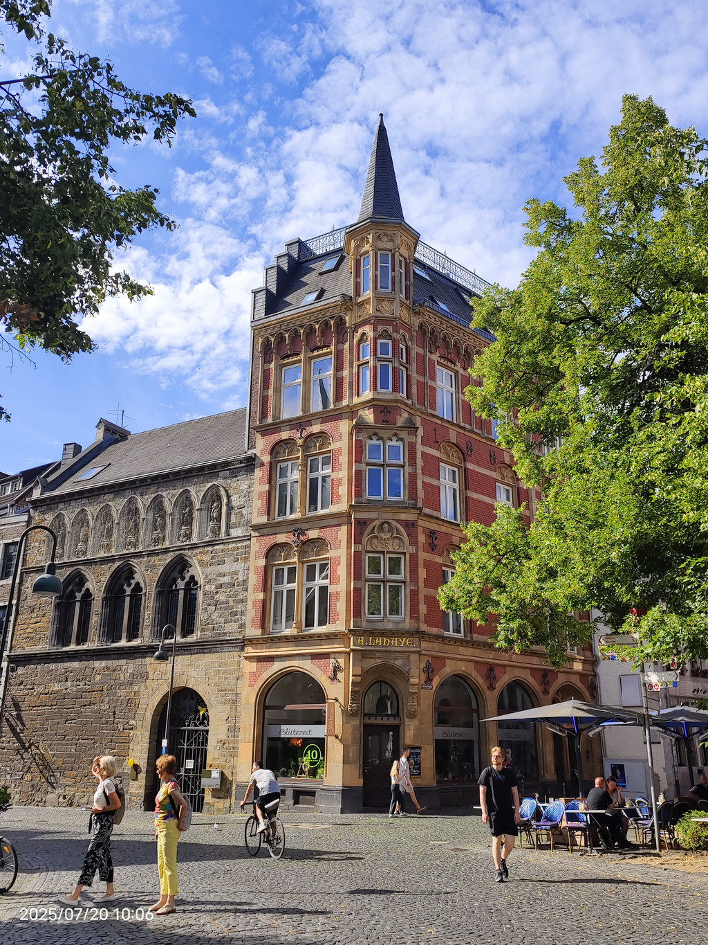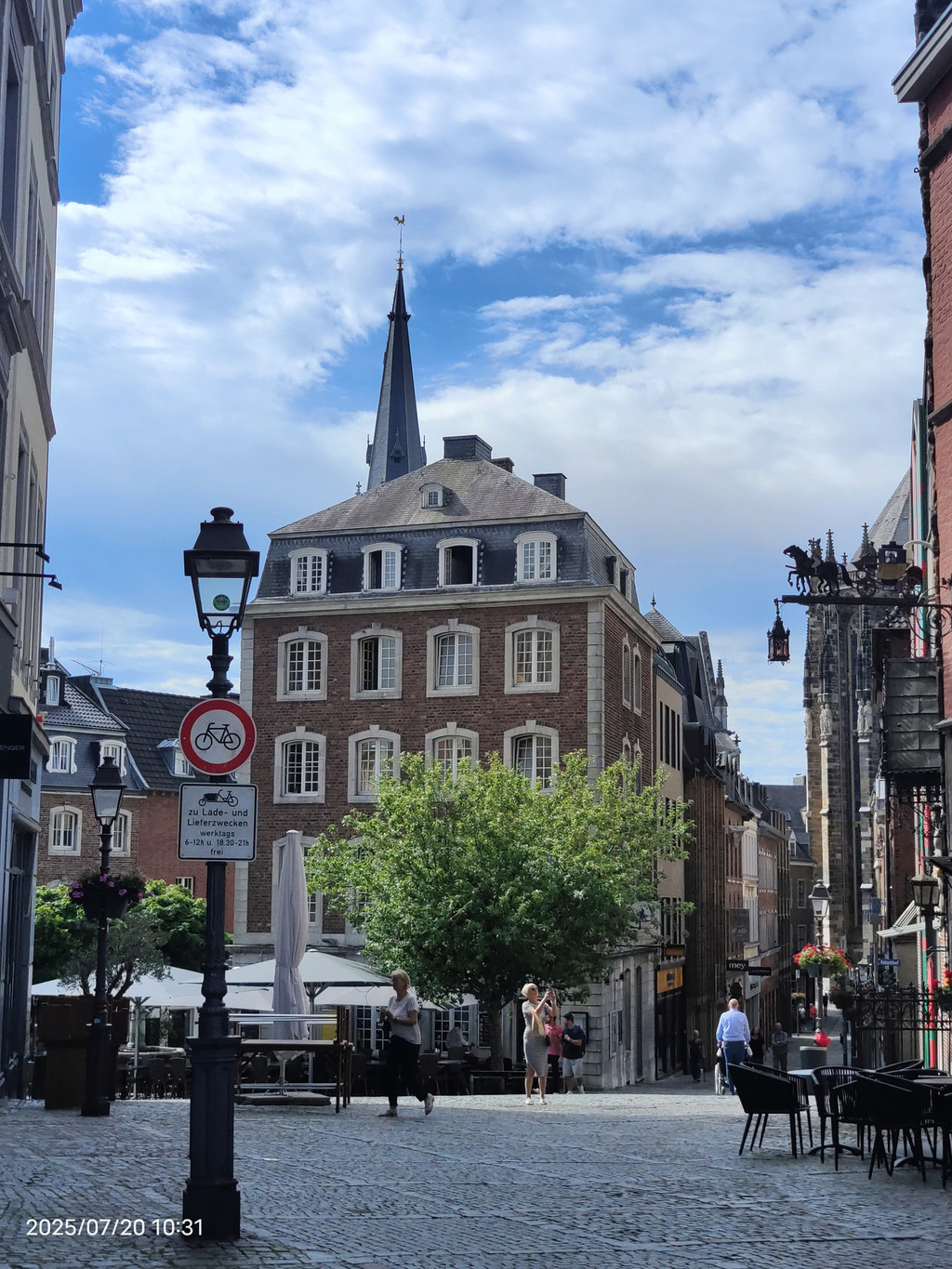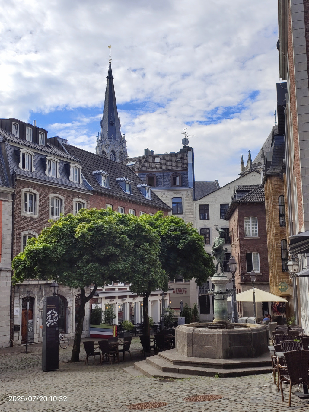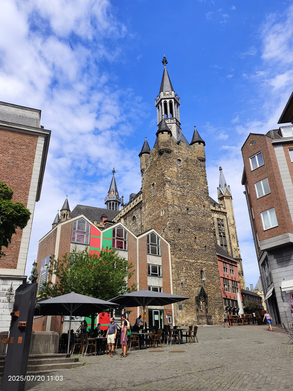 广场上的罗马柱廊静静地见证着这座城市的罗马历史。它隐匿于现代化的外墙之中,看似不起眼,但细细观察,却能发现一段辉煌历史的痕迹。重建的柱子散发着罗马建筑的韵味,提醒着我们亚琛这座城市的古老根基。历史的基座与庭院周围热闹的景象形成鲜明对比,美不胜收。