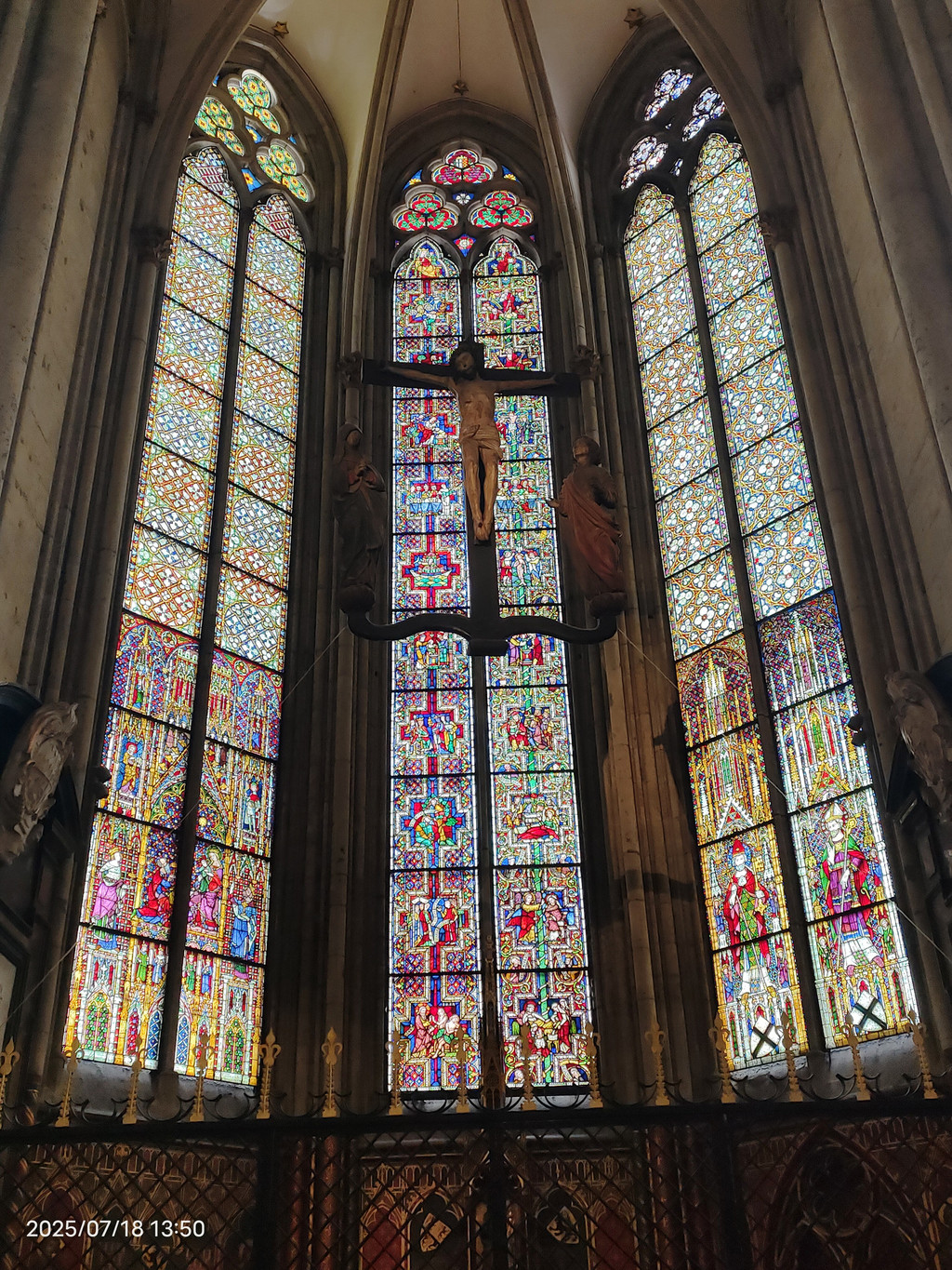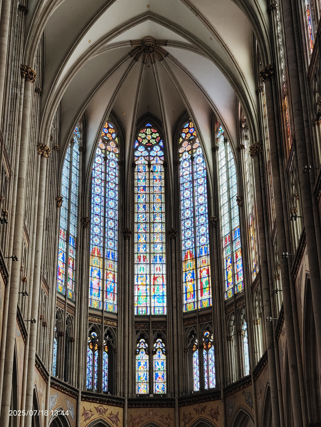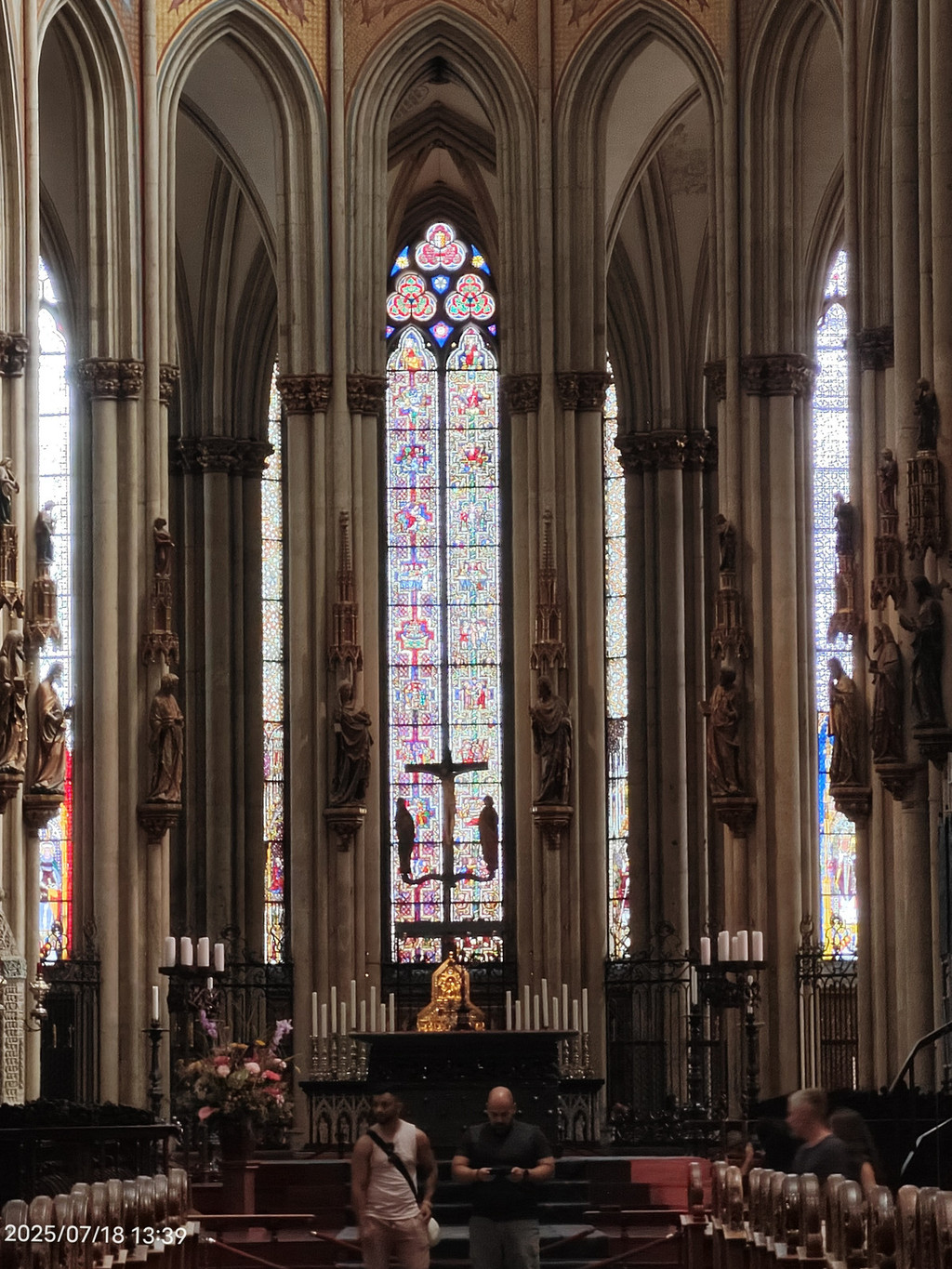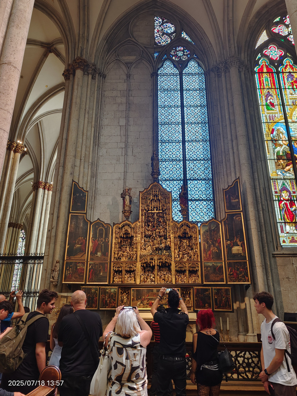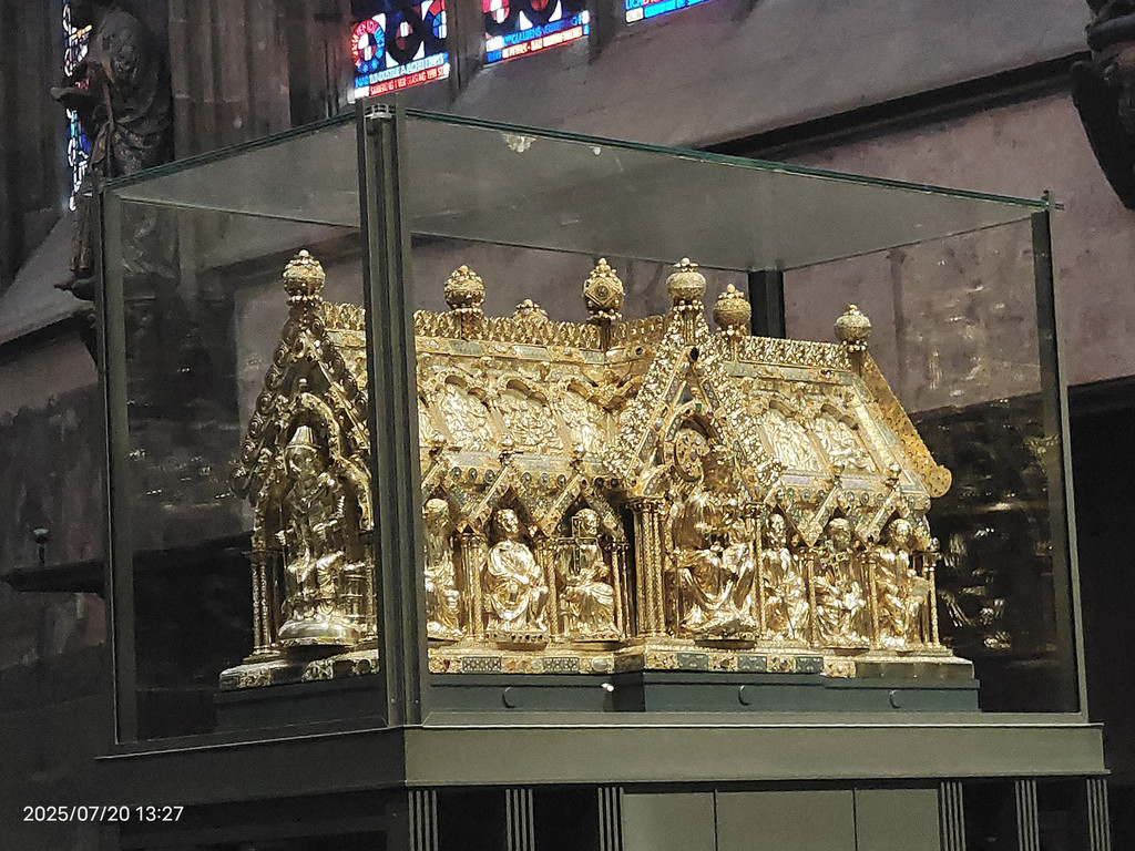 科隆大教堂的正式名字叫圣·彼德大教堂,始建于1248年,直到1880年才最后竣工。科隆大教堂的起源跟三王圣龛息息相关。神圣罗马帝国皇帝佛烈德利赫一世于12世纪赠送三王圣龛給当时的科隆主教后,吸引了络绎不绝的信徒来参访,造成当时的教堂难以负荷、需兴建新教堂,也就是科隆大教堂。科隆大教堂包括五个殿堂和一个绕圣坛而建的带有三个偏堂的回廊。圣坛还保持着初建时的模样,这个圣坛是中世纪德国教堂中最大的圣坛,圣坛上的十字架也是欧洲大型雕塑中最古老、最著名的珍品。圣坛的两侧还排列着有104个座位的座椅。1996年列为世界文化遗产。