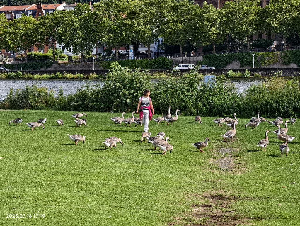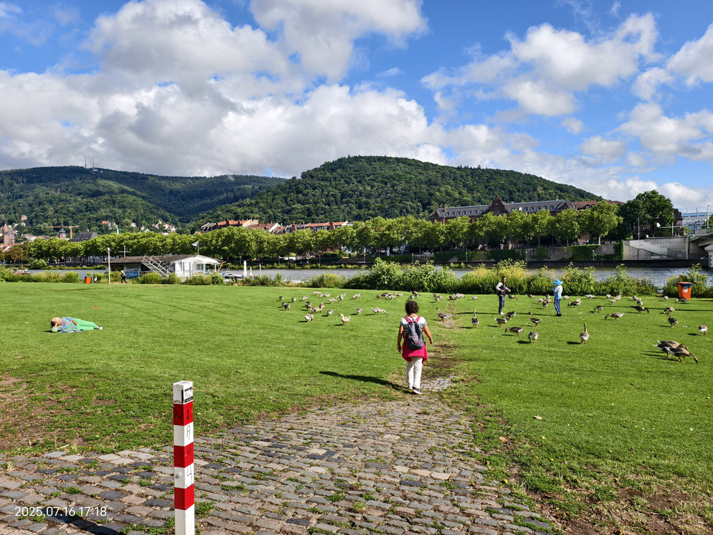 走出诺伊恩海姆社区,沿着诺伊恩海姆一侧的内卡河岸散步,来到了河岸草坪。