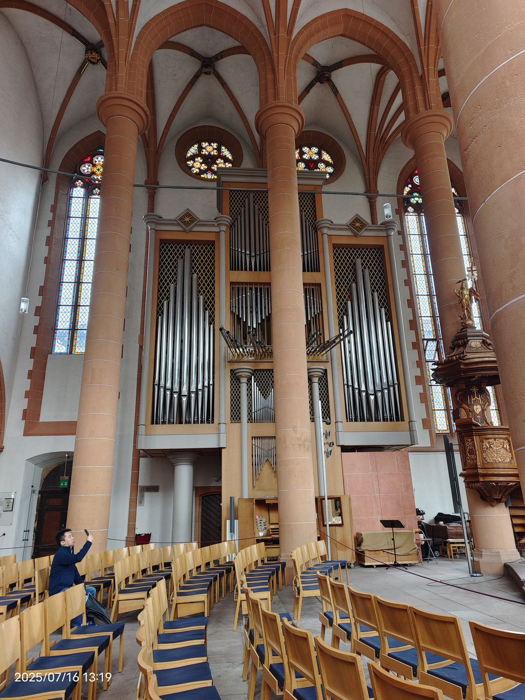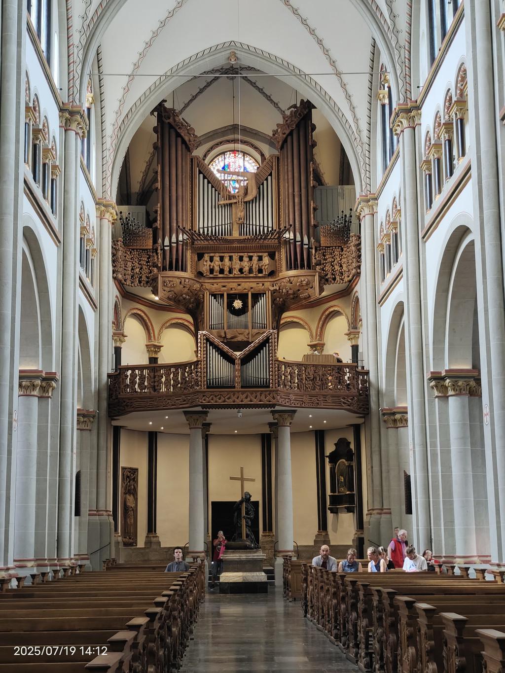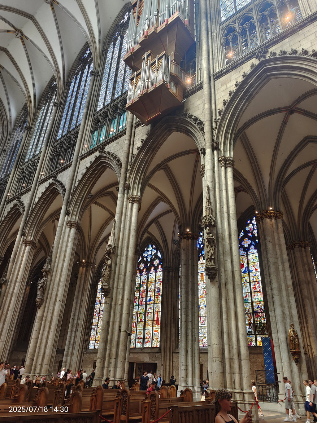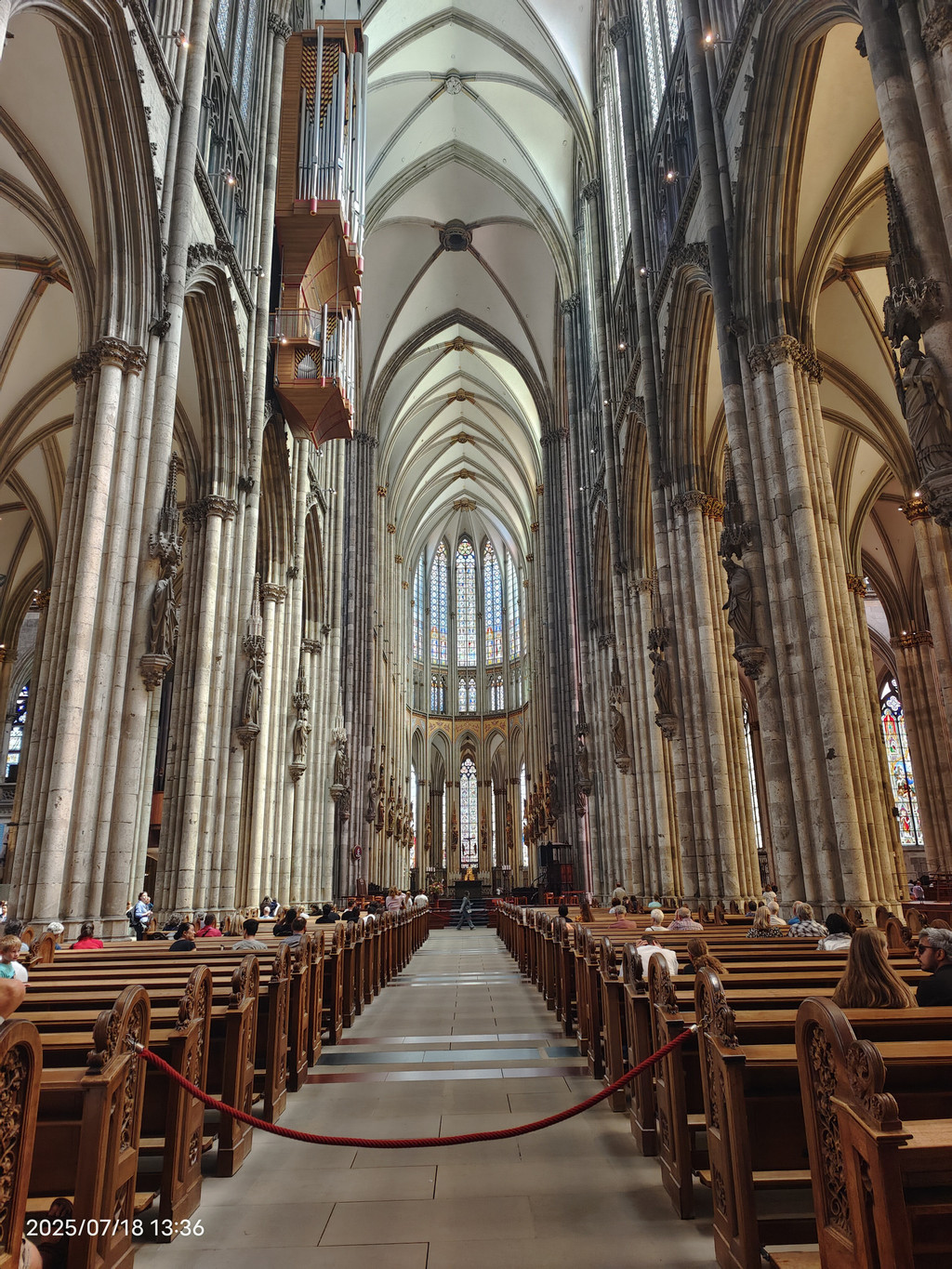 教堂中殿,高达43米,座位超过5500个,左上方为管风琴之一