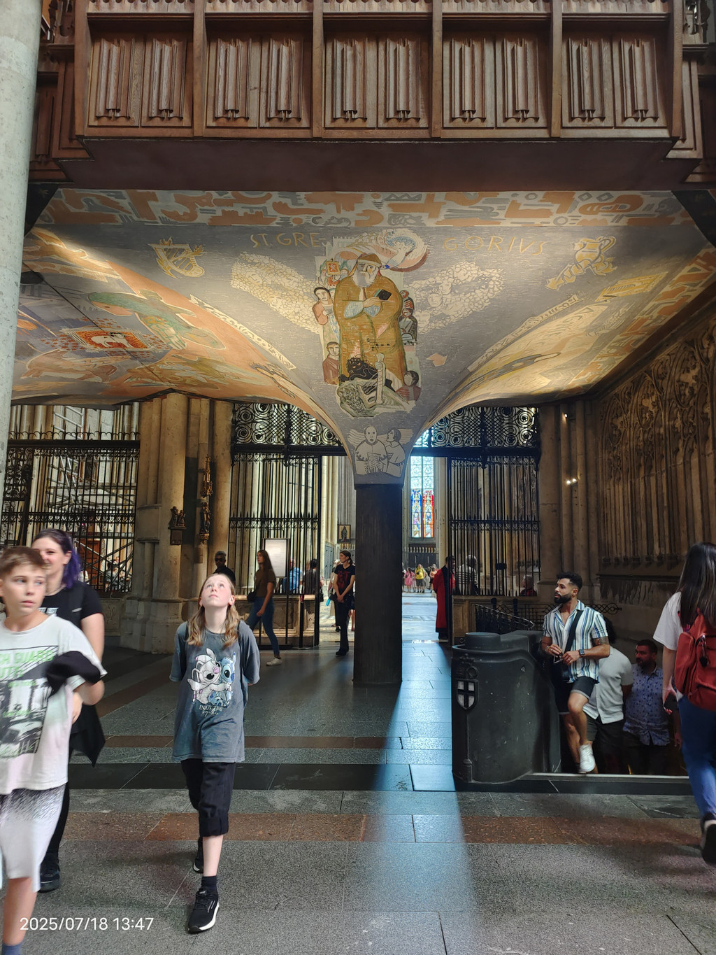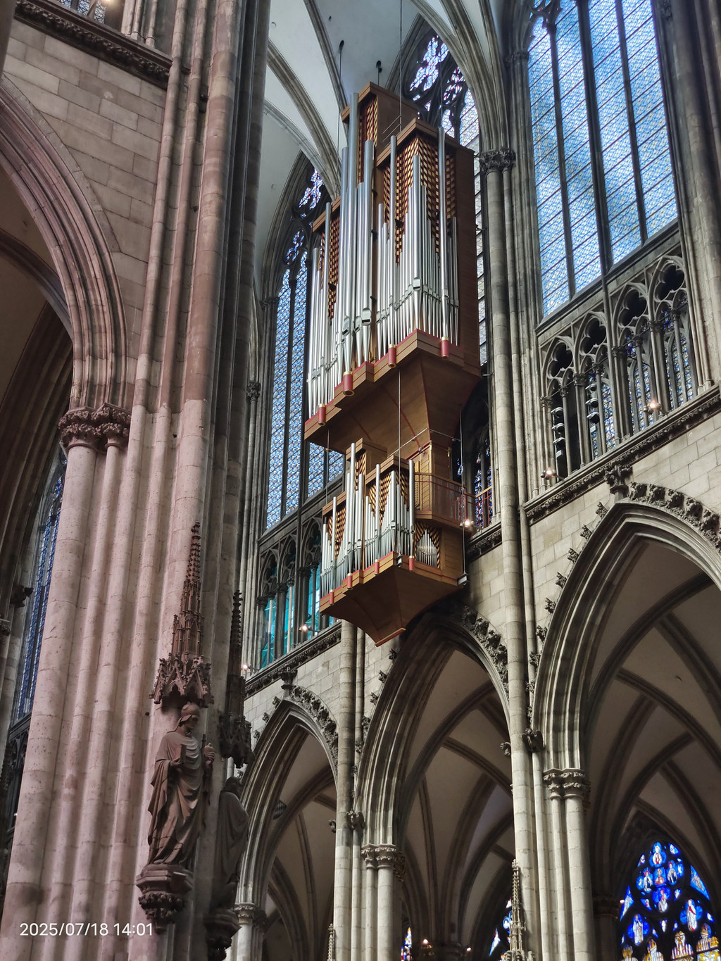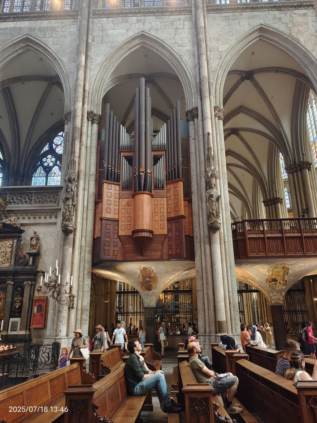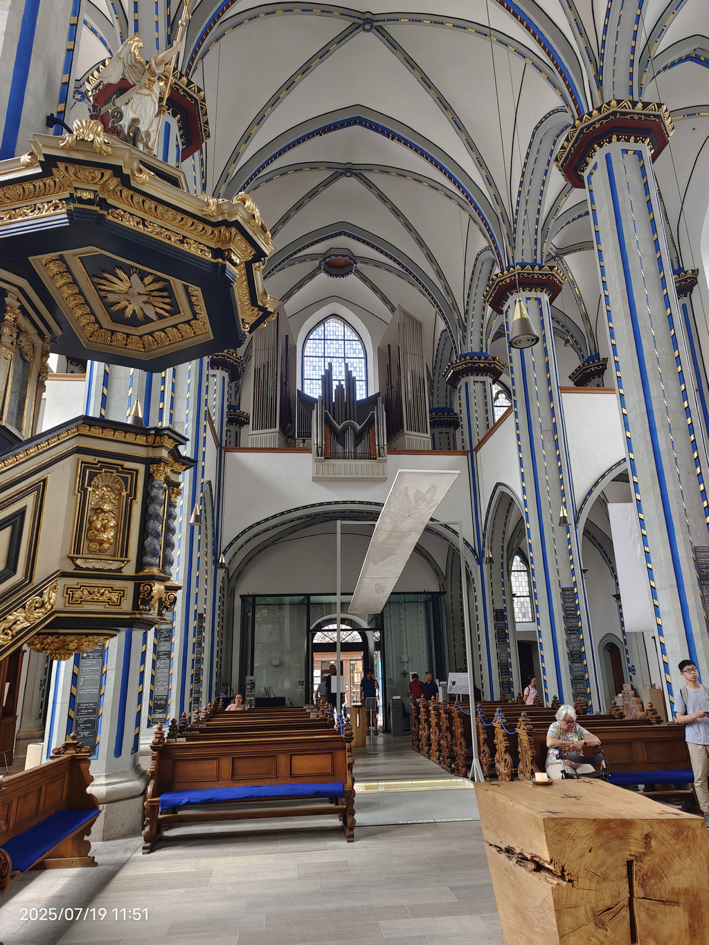 教堂中殿,高达43米,座位超过5500个,左上方为管风琴之一