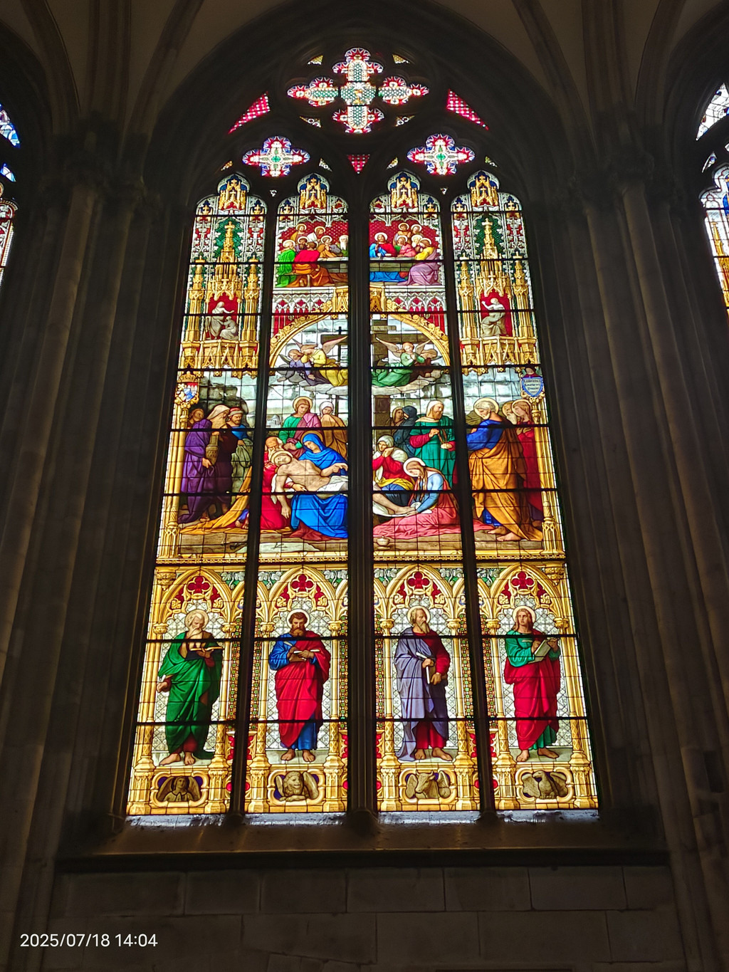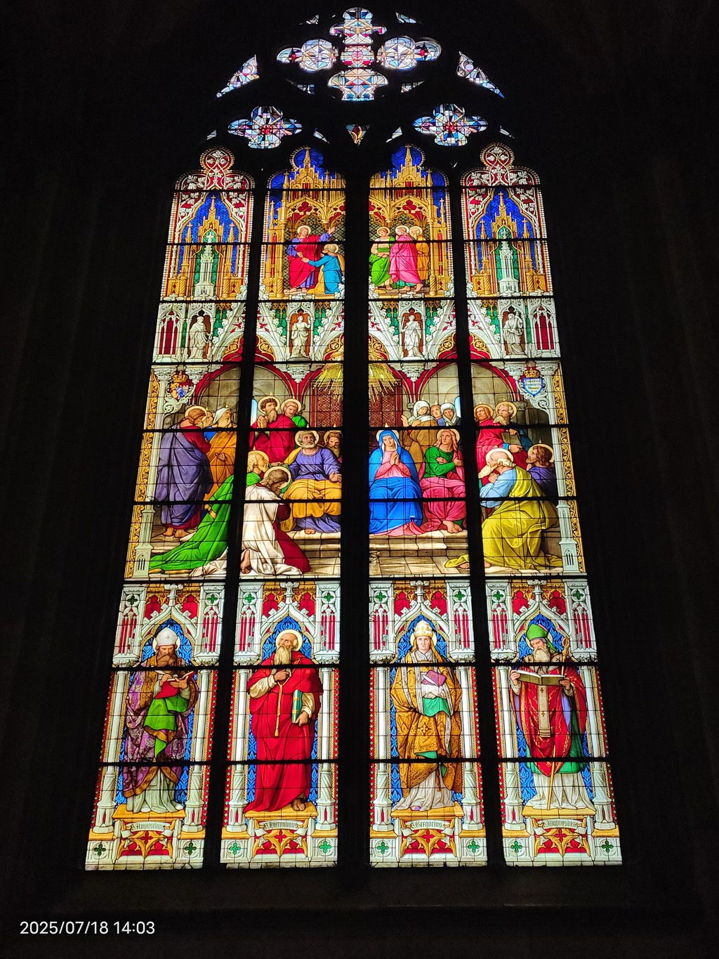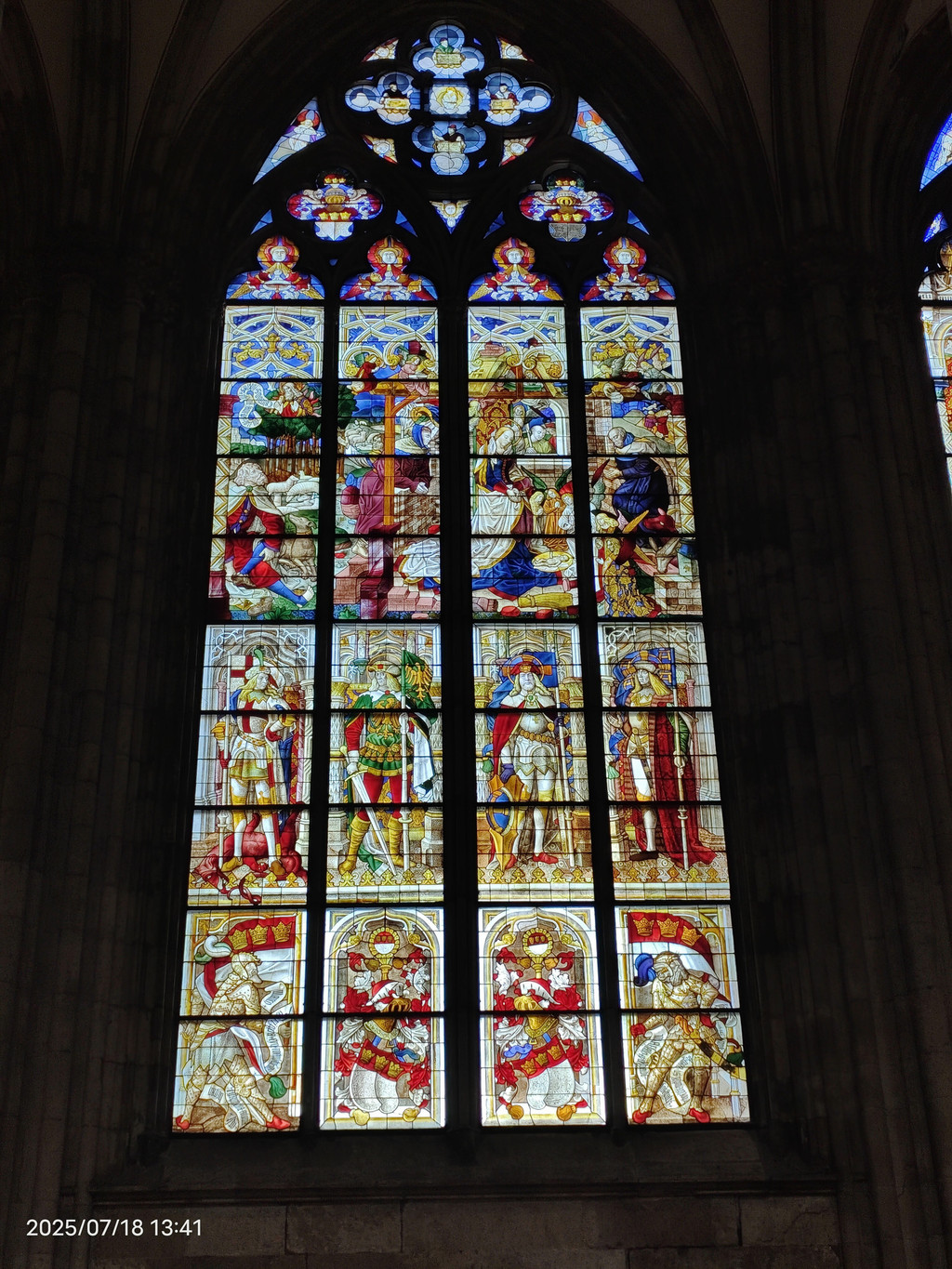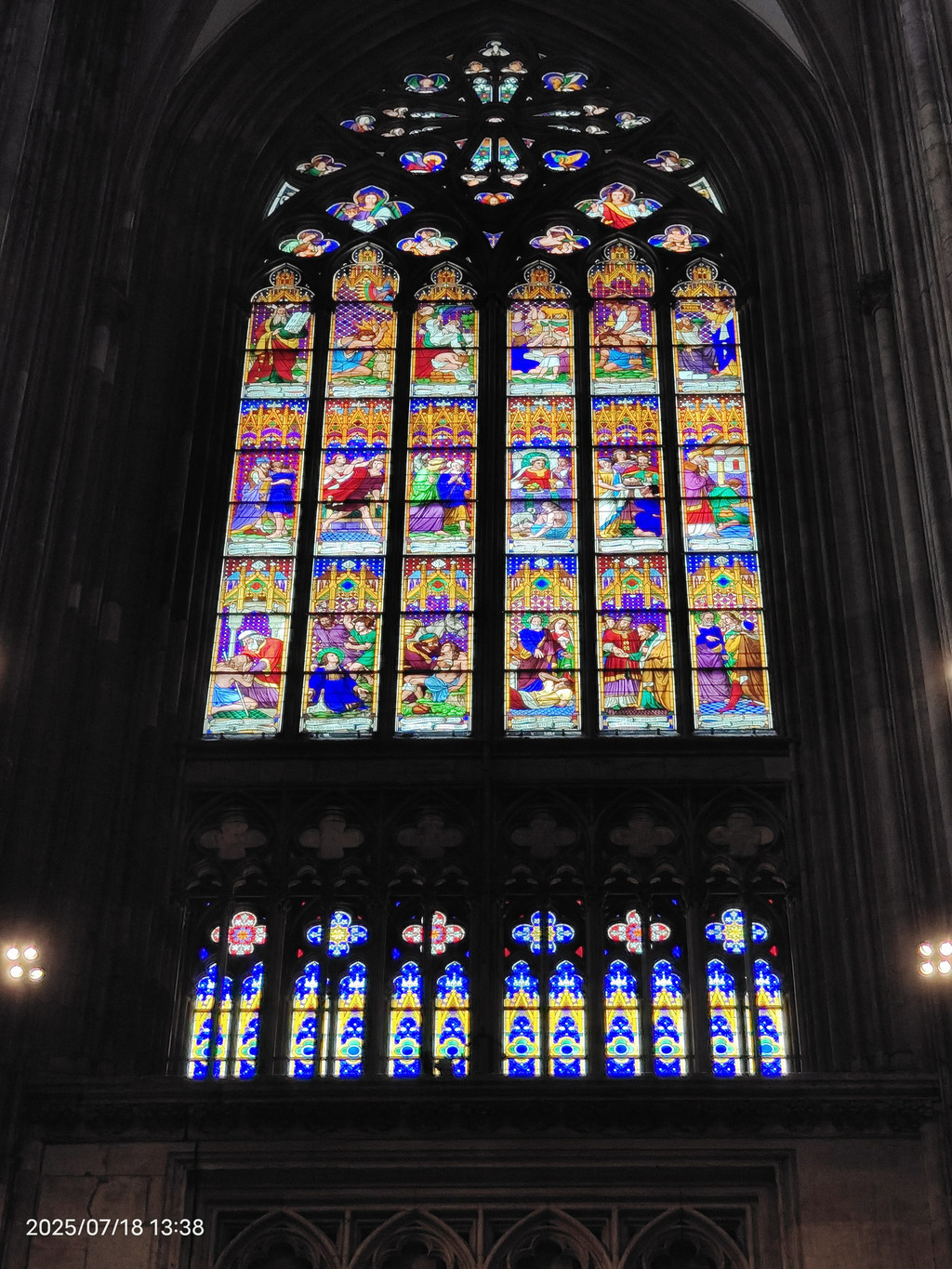 哥特式唱经堂(玻璃之家)由于前来朝圣的信徒越来越多,原有的教堂空间不足,于是在1355年至1414年增建了这座宏伟的哥特式唱经堂。唱经堂的南北两面几乎完全由高达25米的彩绘玻璃窗构成,充满了神圣的光线,因此被誉为“亚琛的玻璃之家”。