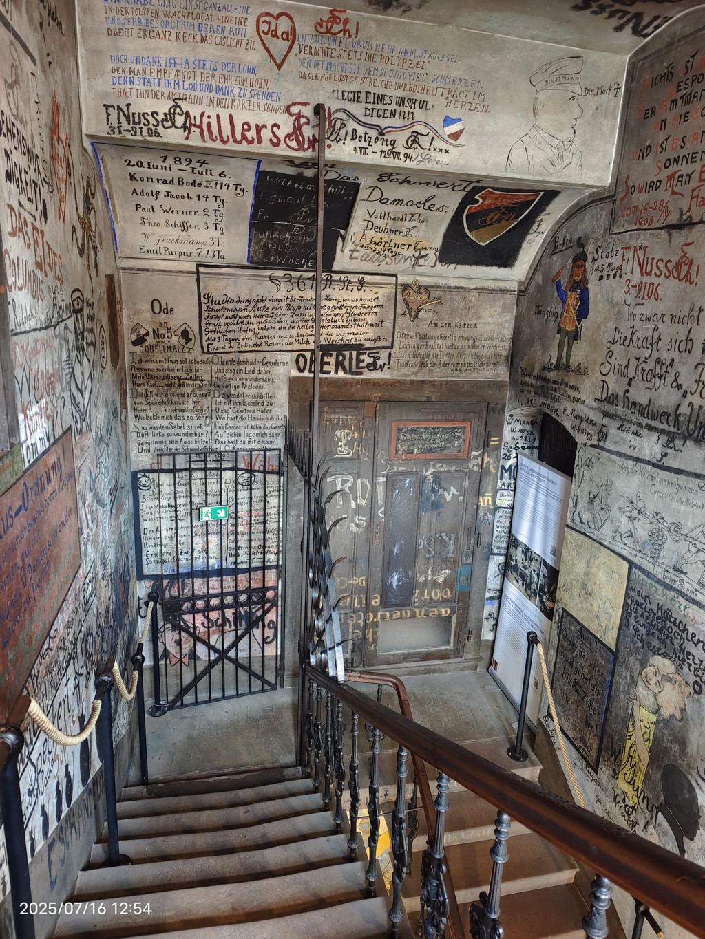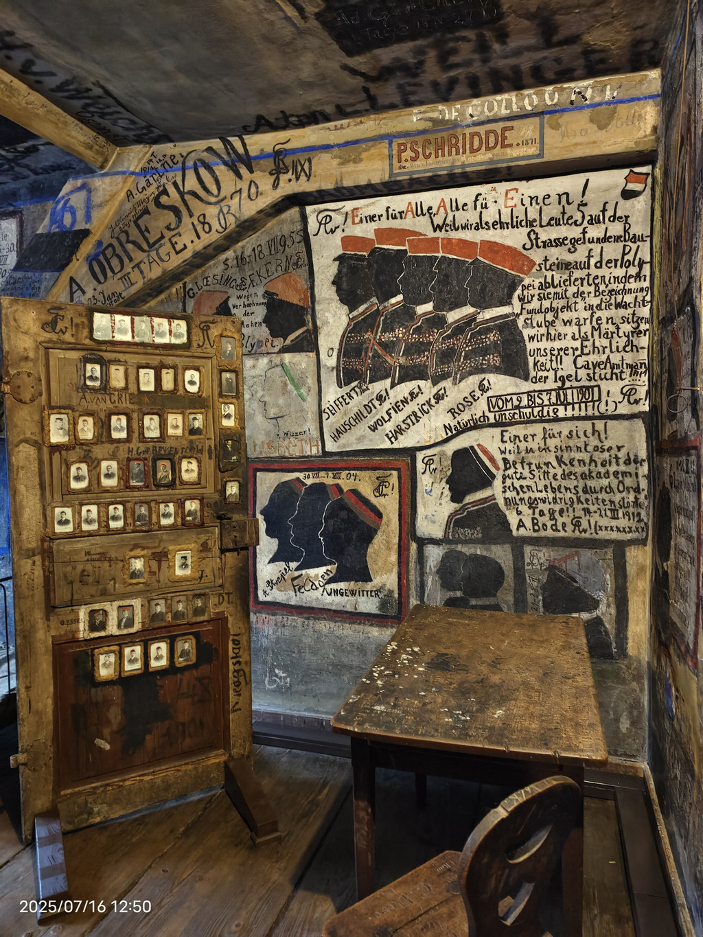 海德堡一处非常有特色的景点,位于海德堡大学博物馆背面。1778年至1914年,大学拥有自己的管辖权,可以根据违法行为判决“关押”学生3天到4周。“罪行”有过激的决斗、夜里制造噪音等等,但通常无伤大雅。在“服刑”期间,学生依旧可以去上课,但下课后就必须回到监狱。为打发时间,学生开始在墙上画画或写标语,后来逐渐形成监狱文化。这些墙上的“艺术品”保留至今,供大众参观。