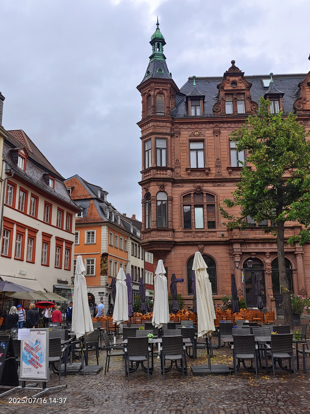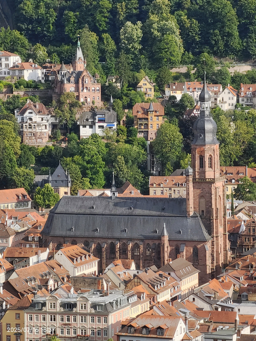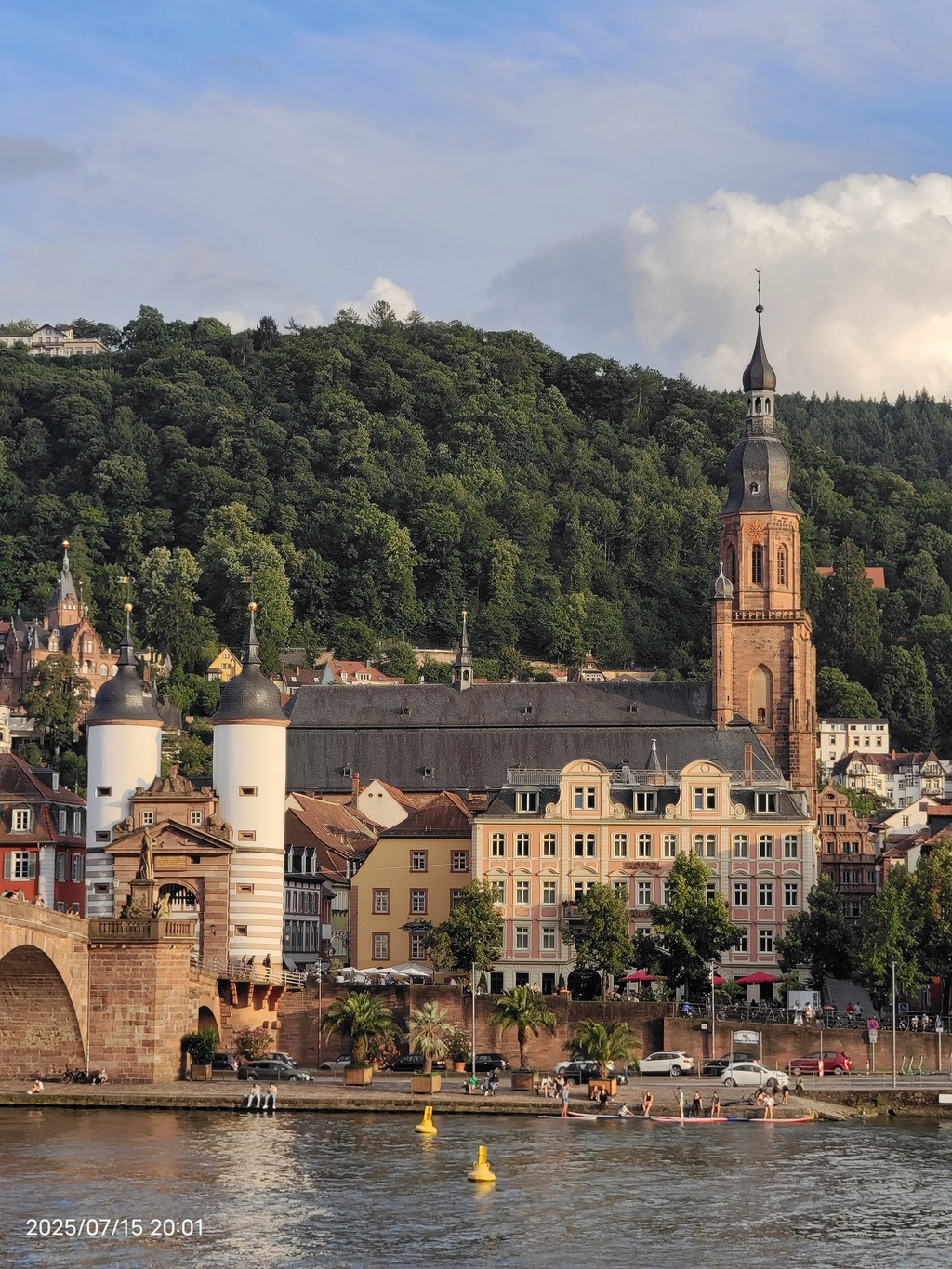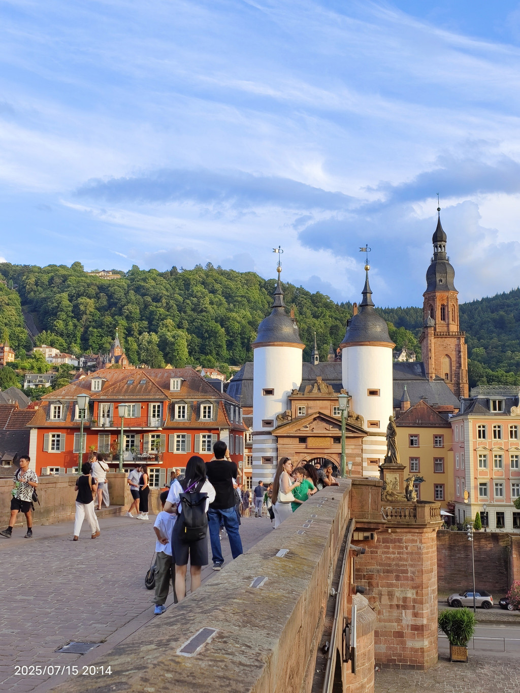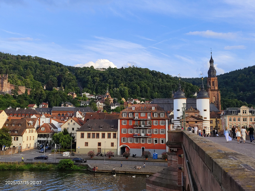 花园观景台上游客络绎不绝,这里视野更开阔,老城、内卡河和老桥一览无余,是观看日落的最佳地点之一。