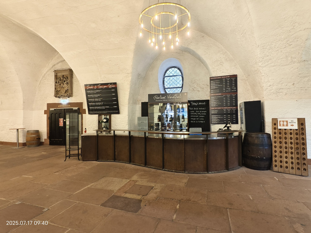 酒吧供应城堡自酿的葡萄酒,走累了,来一杯,坐下歇歇脚。