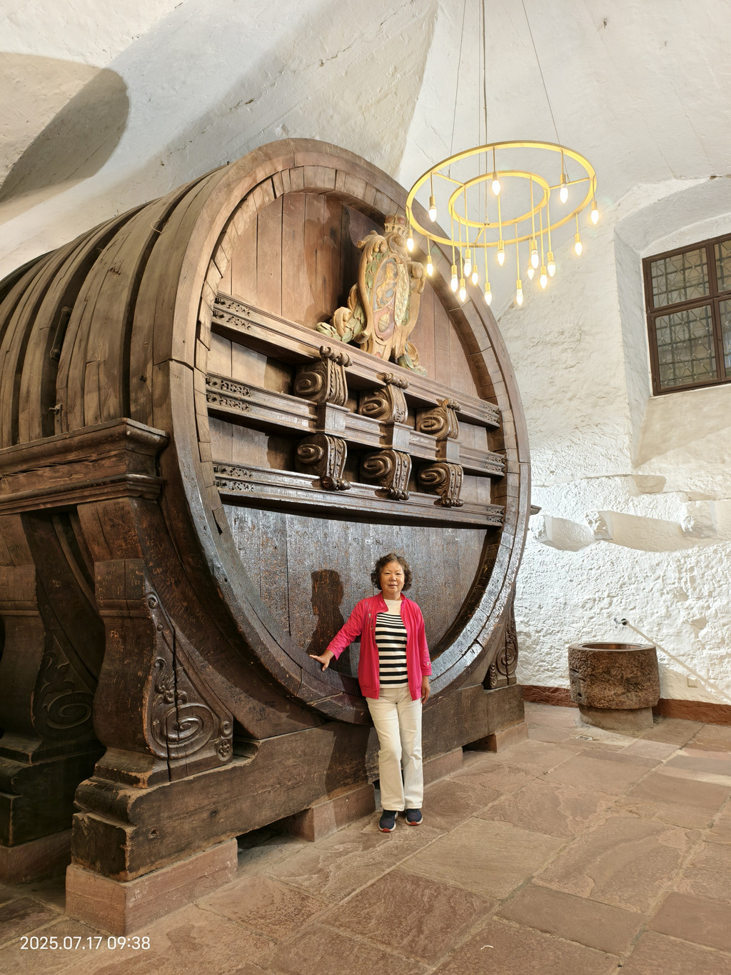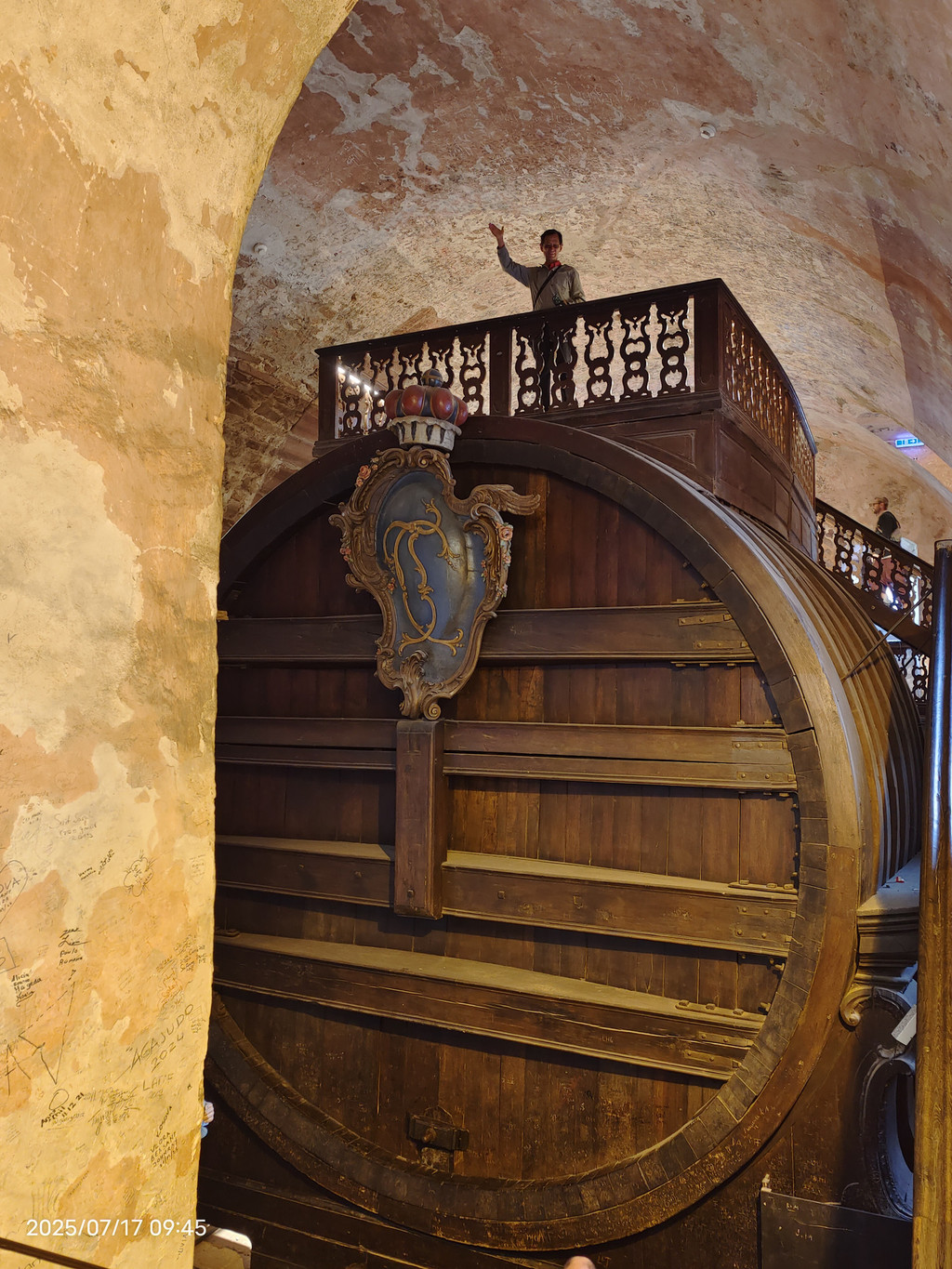 这个大酒桶是世界最大的酒桶,1751年以90棵橡树打造的,因为当时的酿酒商可以用红酒来缴纳税金,而这里就可以存放 58,000 加仑。