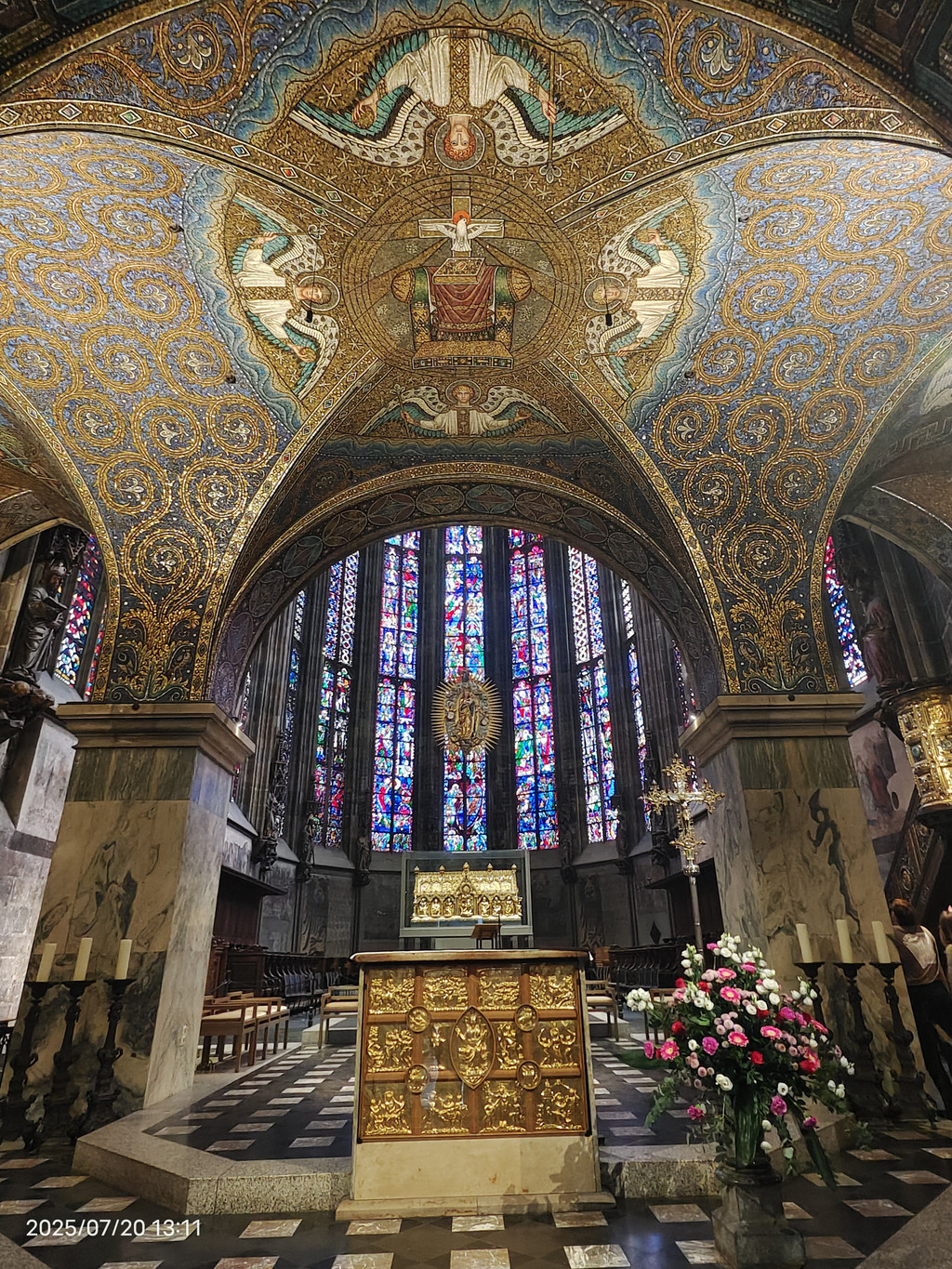 亚琛大教堂的天花板很特別,有很精細的马赛克壁画