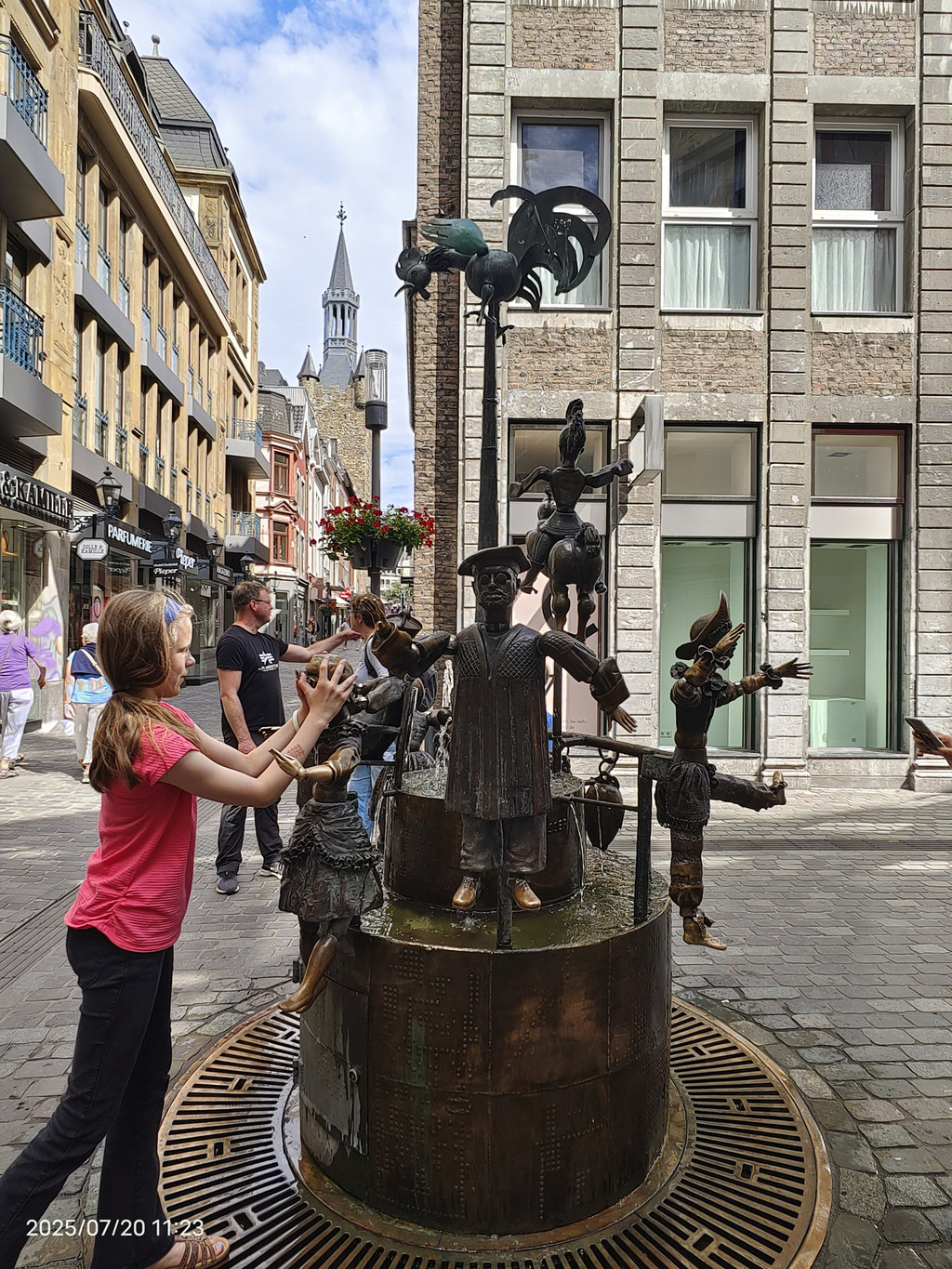 小人偶喷泉,不同的人偶代表的是不同的角色,时尚 = 纺织业、学者 = 印刷出版业、神父 = 大教堂、妈妈 = 零售业、小丑 = 嘉年华、公鸡 = 法国的影响力。这里可以说是小孩的天堂,因为每个人偶的关节都可以玩,人偶会摆出你喜欢的姿势。