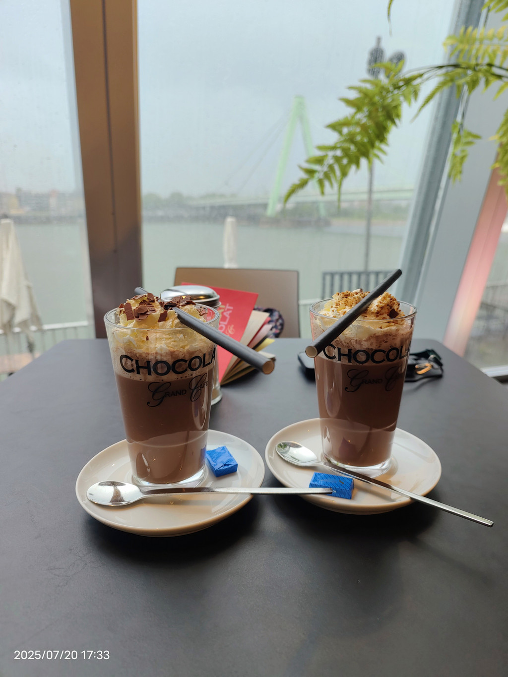 来一杯巧克力奶泡,坐下来慢慢品尝,看看莱茵河。