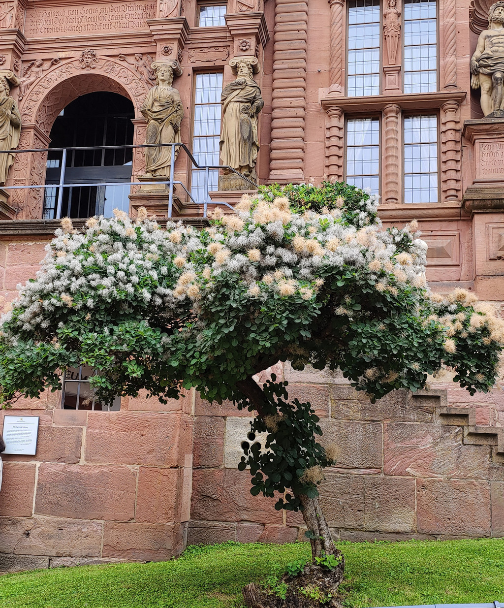 城堡原是选帝侯的,里头有历代选帝侯各自盖的建筑。其中的腓特烈宫外墙上排列着16尊历代选帝侯的雕像,是城堡的历史见证。