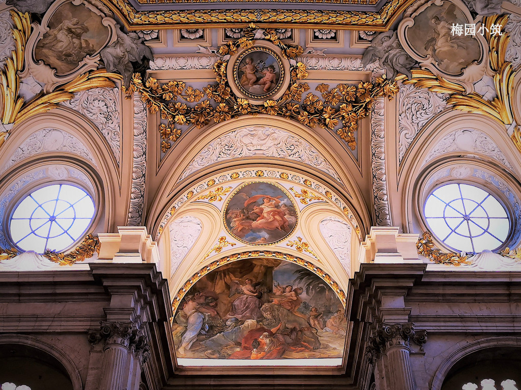 马德里皇宫最值得一提的是帝王厅和绘画长廊,帝王厅修建于卡洛斯二世时期,帝王厅内的拱顶画以当时特有的绘画方式展现了西班牙君主时代的故事,整个帝王厅的风格主体在皇家作坊内完成,亦不乏昂贵的舶来品作为点缀,比如说罗马的青铜狮像,威尼斯的枝型水晶吊灯,以及那不勒斯的天鹅绒刺绣