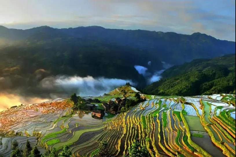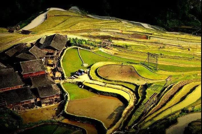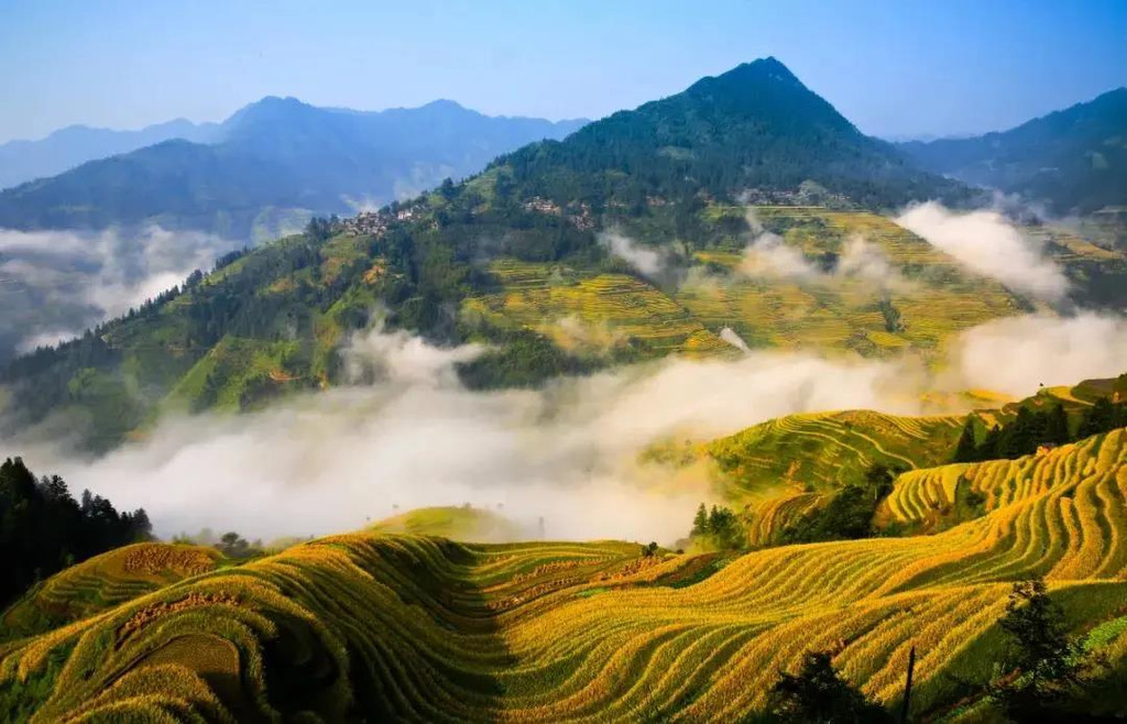 不管是从线条来看,还是从整体形态来看,加榜梯田都是很美的。春天放水时,田里倒映着山间的绿植、云雾,夏天,田里绿油油的水稻,随着山风摇摆,秋天,万亩梯田都染上了金黄,如果刚好是收割的时候,还能拍到梯田秋收的人文风光。