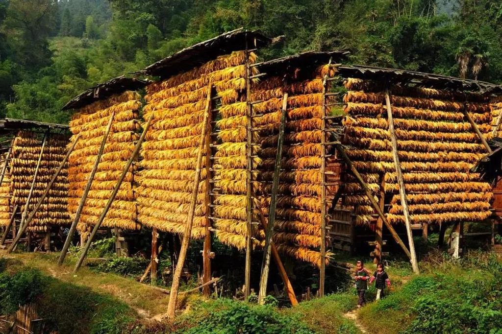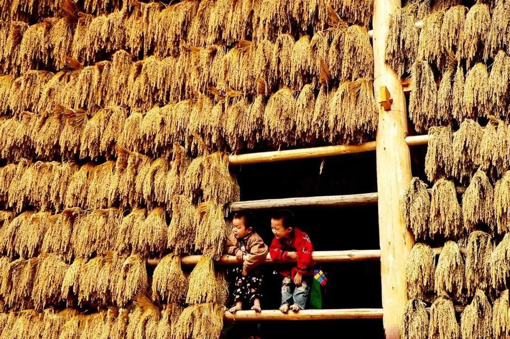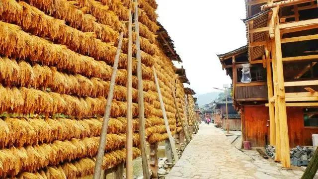 小河边十几米高的禾廊架上会在秋收的季节挂满金色的糯稻。走进寨子,从路两旁的木楼缝中散发出的腌鱼香伴合着糯谷香扑鼻而来,既感到新奇又觉得亲切。
