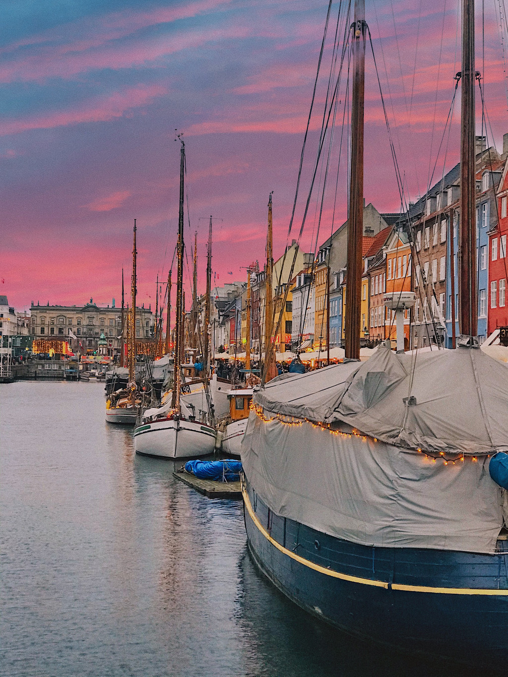 晚霞下的哥本哈根颇有威尼斯的感觉,但是也有些不同,威尼斯很小清新,新港的建筑色彩饱和度偏高,显得更加温馨可爱,更有新年的味道。也许是因为要过年了,我心里都是新年的味道吧哈哈哈哈。