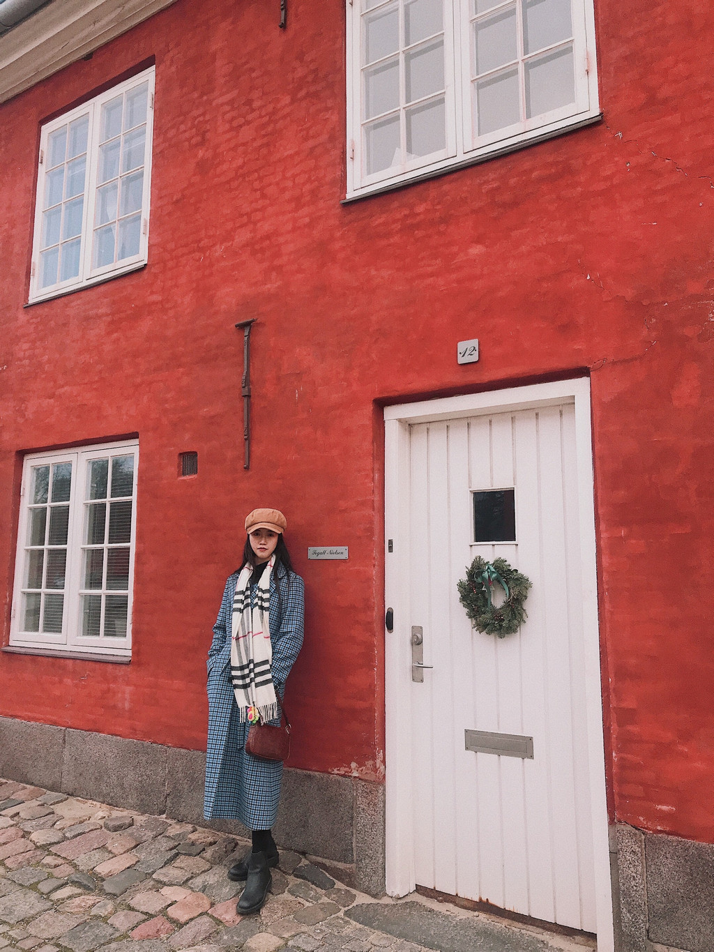 走进五角星的里面,是矮矮低低方方正正的楼房,除了大红色的颜色以外,一看就是军事基地的模样,像极了我的本科母校西北工业大学的建筑风格。没有想到在2020年丹麦跨年的时候让我回忆起母校。不过这里的军事基地比西工大更加浪漫一些,红色的墙白色的门和窗,显得温馨很有新年的氛围