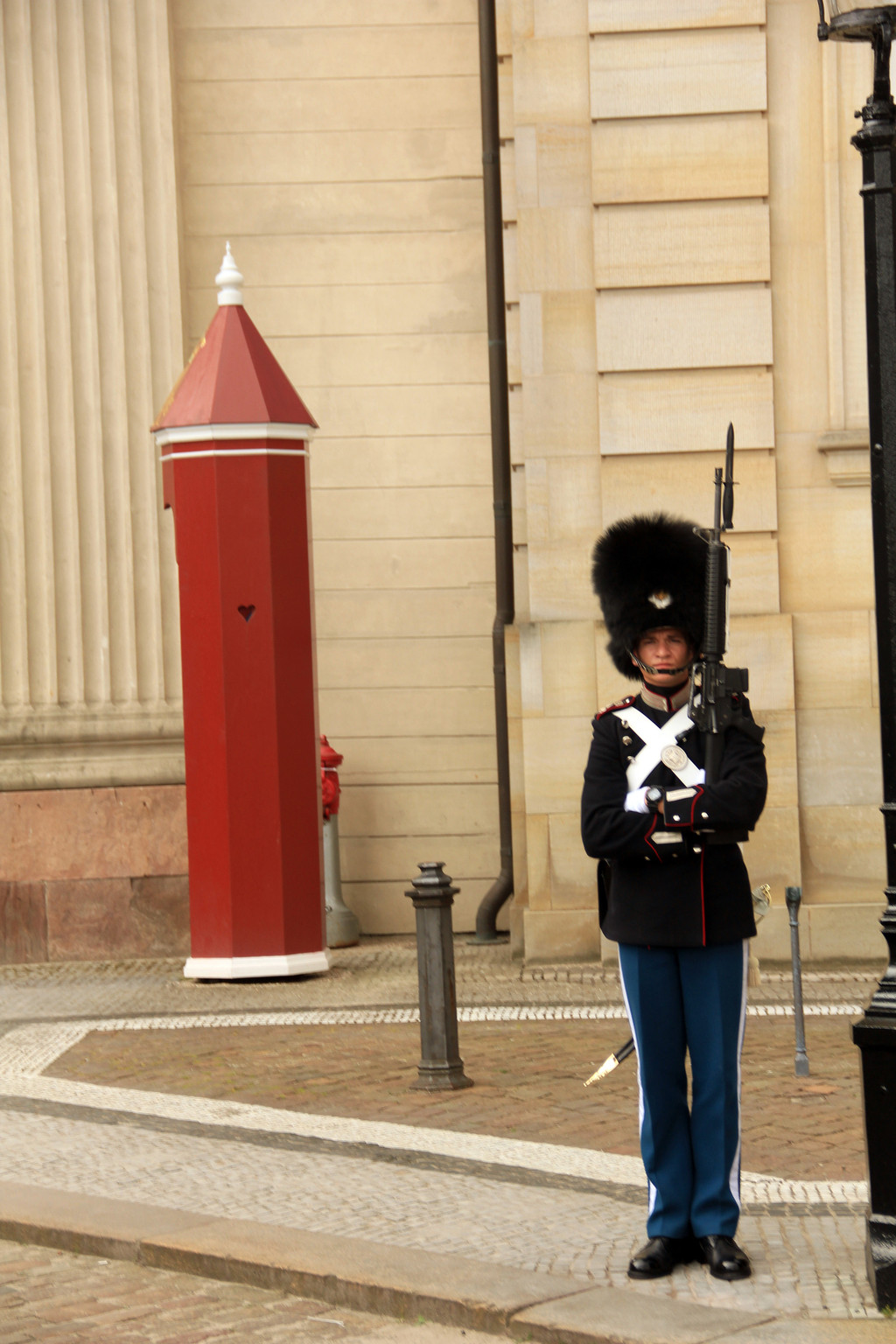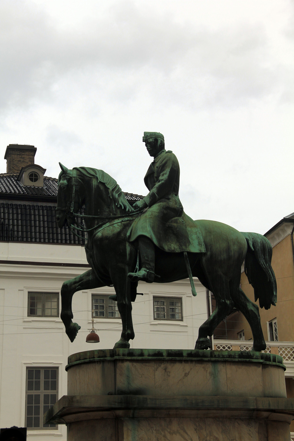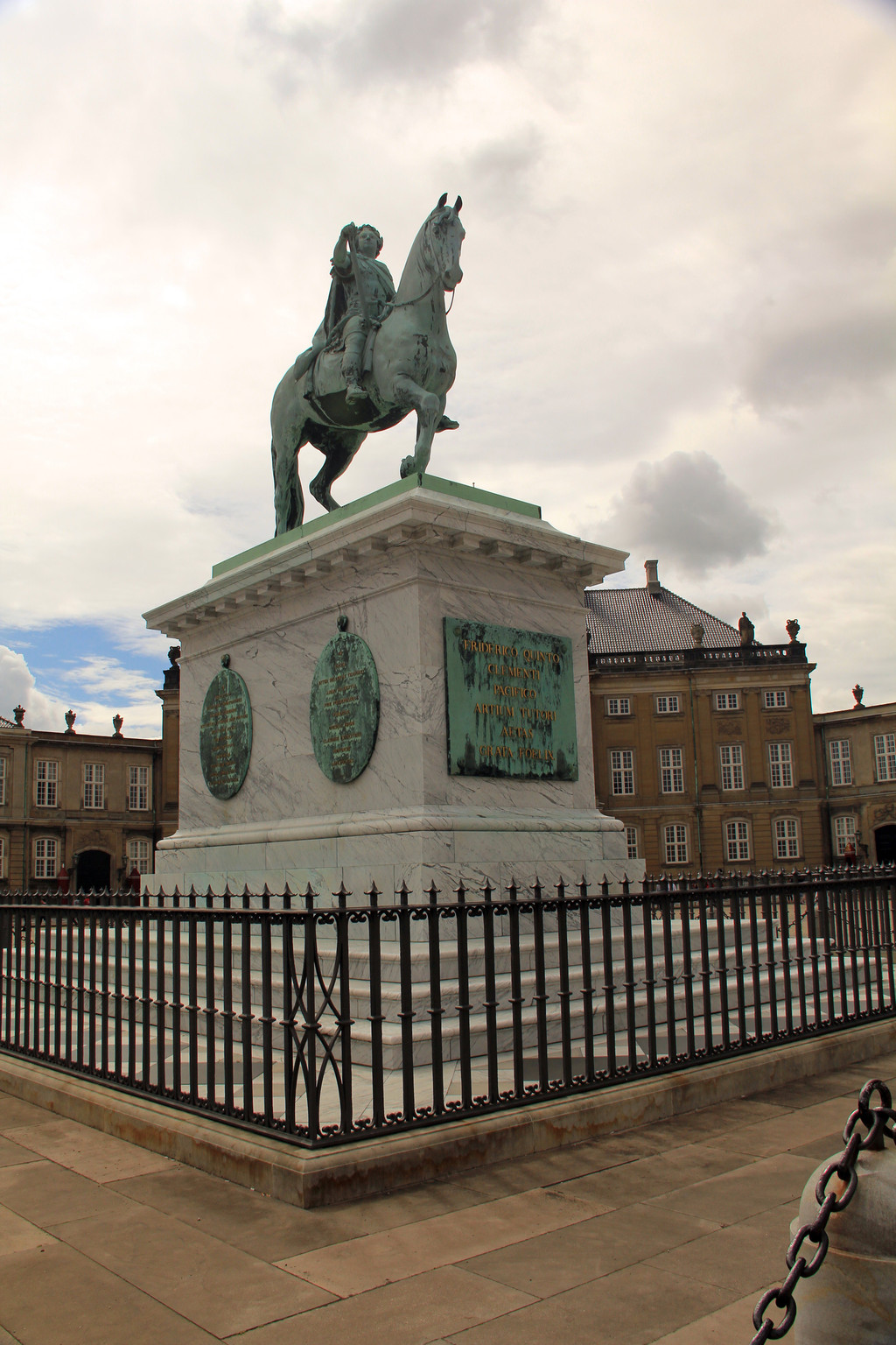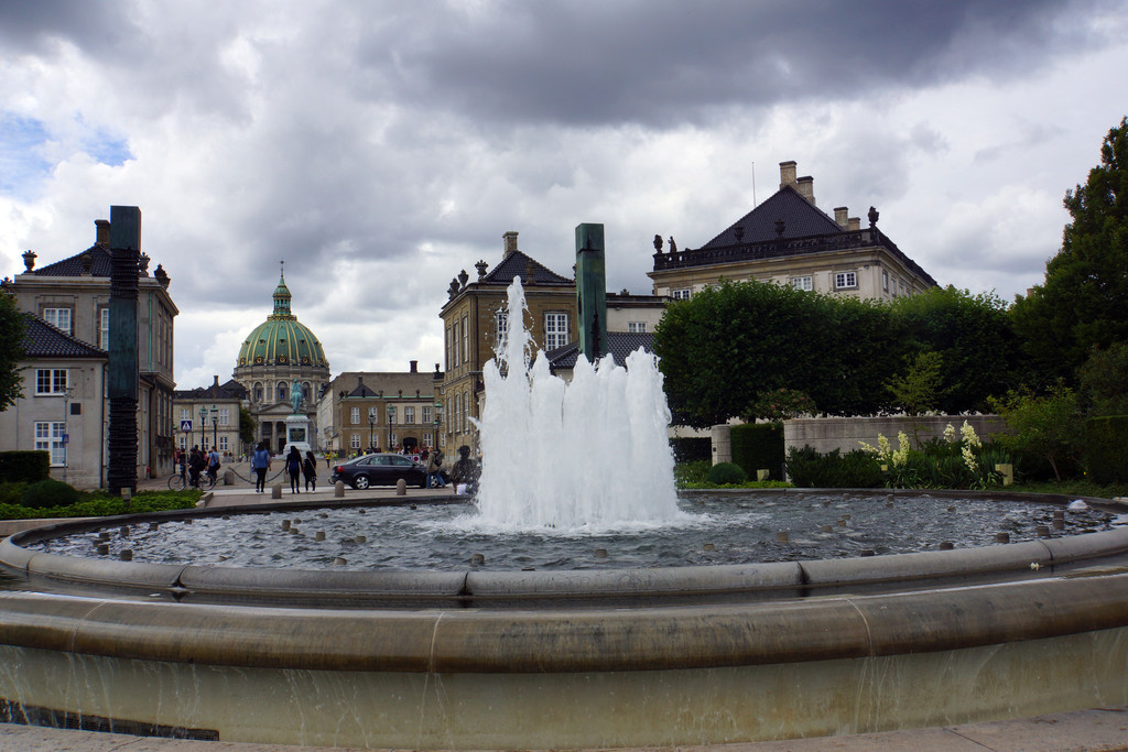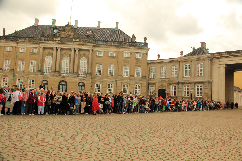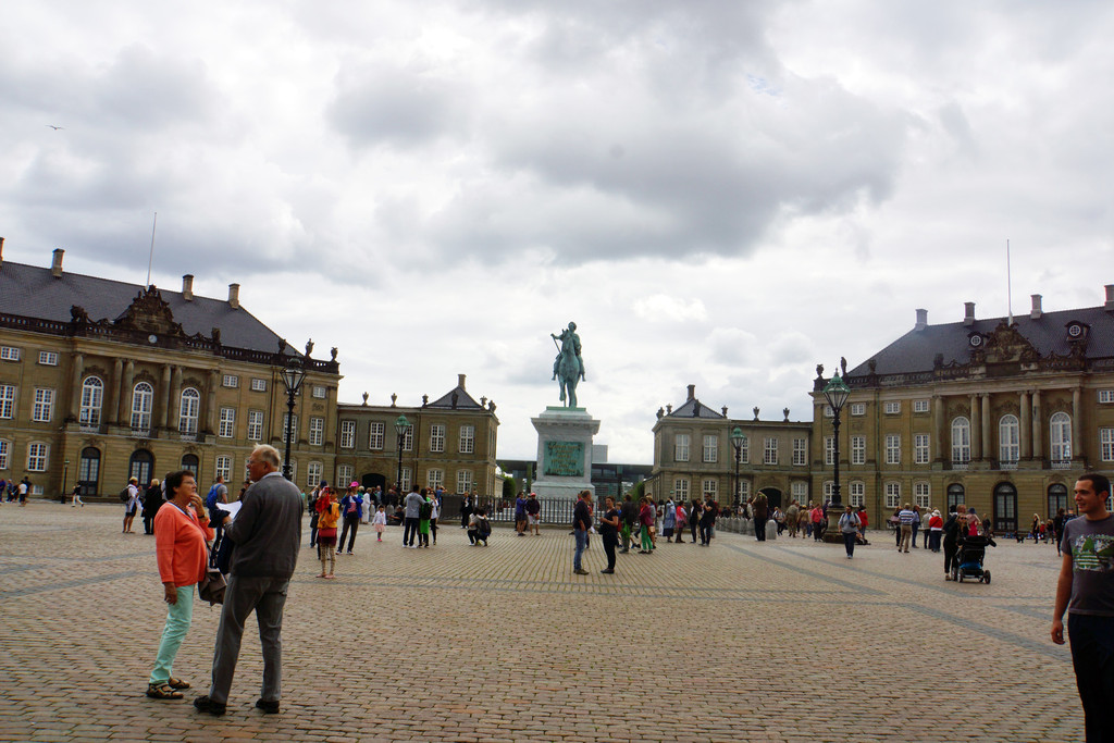 随后去了皇宫广场,欧洲的皇宫都有些相似,广场中央是菲特烈五世国王的骑马铜像,四座宫殿环绕其中。其时,看见许多人在一座宫殿前排成几排,我们也赶过去凑热闹,可是好像什么事也没有,人越围越多,突然从那个门里出来两个妇女,一个抱着孩子,一个推着孩子,大家都端起相机,手机,一阵猛拍,人群里有人说是皇族成员,其实后来发现是卫队换岗仪式,可见从众心理不只我们中国人有。