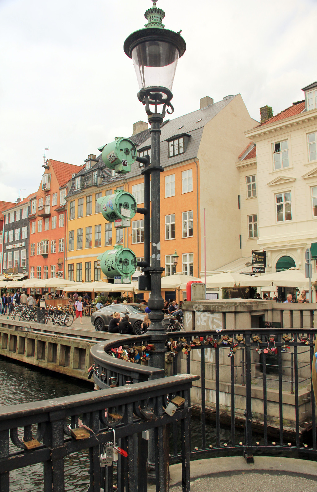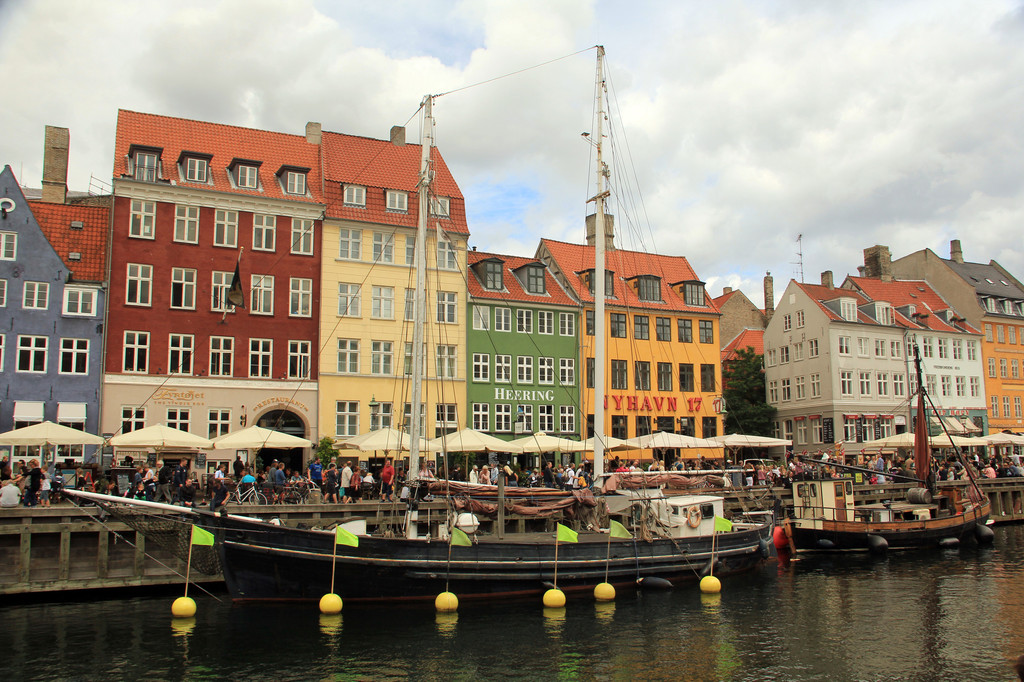 余下的几小时是自由活动时间,同团的人都去了步行街购物,我们没有采买任务,就四处闲逛起来。我们来到新港运河,这是一条人工运河,建于1669--1673年,运河将海水引进国王新广场,将海上交通引进城市中心。运河两岸的房子高低错落,色彩鲜艳,而河里停靠的双桅帆船令人有时光倒流的感觉。运河能够晒到阳光的一侧岸上就是闻名的酒吧街,酒吧的座位基本坐满,大家慢慢喝着啤酒,享受着这难得的阳光。运河上古老的铁桥上挂满了各式各样的同心锁,连接着一个个幸福家庭,没有带锁,不然也很想加上一把,为自己再来这美丽的地方找个理由。