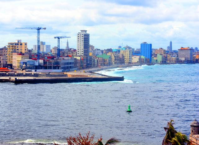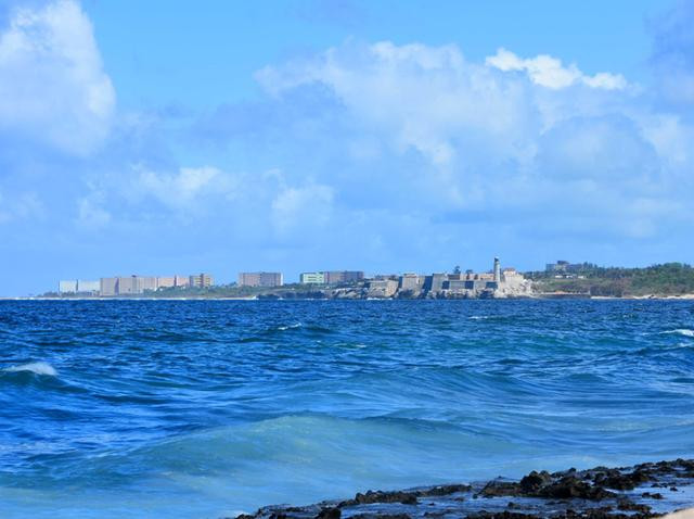 在莫罗城堡处放眼望去,对面就是哈瓦那港。古巴哈瓦那港湾狭长,近岸水深12米,可容纳远洋巨轮,湾底建有地道,沟通两岸交通;哈瓦那输出以糖、雪茄烟、热带水果等为大宗物品等,全国一半以上的进出货物均经过此地。