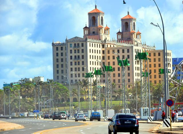 团队的大巴车离开榕树广场驱车在哈瓦那市区中行进,转眼来到著名的海滨大道。对于这条海滨大道记者实在太熟悉了。因为不久前上演的美国好莱坞环球影业公司拍摄的最新版《速度与激情8》一片的外景地之一就选在了这里。而且影片开始部分的范•迪塞尔饰演的多米尼克•托莱多进行赛车的场面就是在此拍摄的。虽然从电影里早已看到过海滨大道的景象,但如今身临其境,记者还是有一种莫名的兴奋之感。