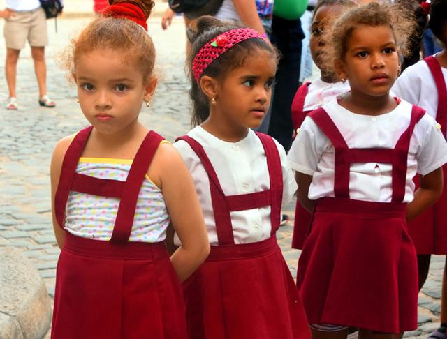 教堂广场的东面屹立着建于1704年的Arcos侯爵府和Lombillo伯爵府,建筑的低层都有宽敞的凉棚。其中的后者成为哈瓦那的第一所邮局。大教堂广场作为古城的中心,是各种活动的举办地。我们到此时,正好赶上一个小学校组织学生们在此进行活动。可爱的孩子们吸引了来此参观的世界各地游人,大家纷纷上去和孩子们拍照留影。