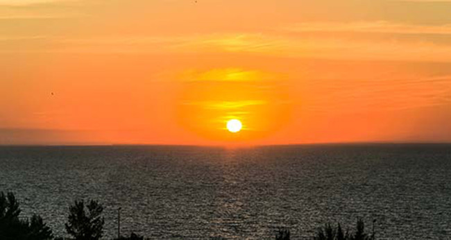 只见海面上风平浪静,灰蒙蒙一片,唯有东方天边处稍有亮色,我们猜测这应该就是海上日出的地方。