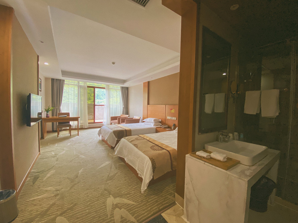 经过三个小时的车程,到达了天堂寨国际度假山庄