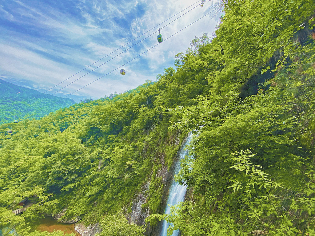 下山的时候,我们乘坐一段缆车到达天堂寨的瀑布群后步行下山