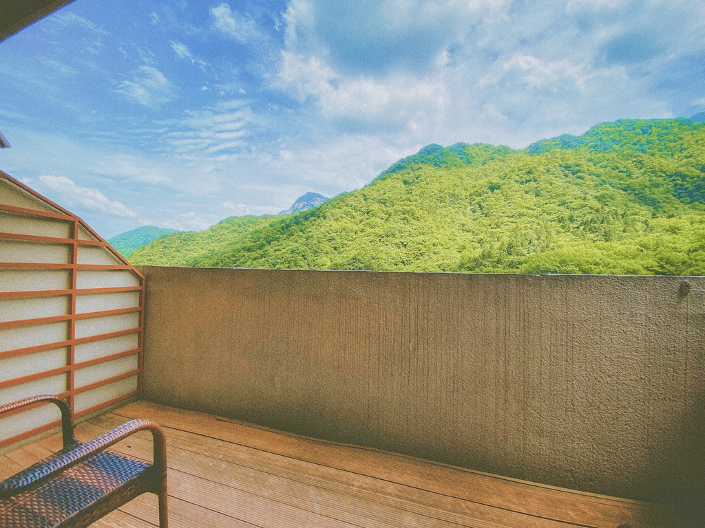 山庄坐落在景区的内部,周围都是看不到边的绵延山脉