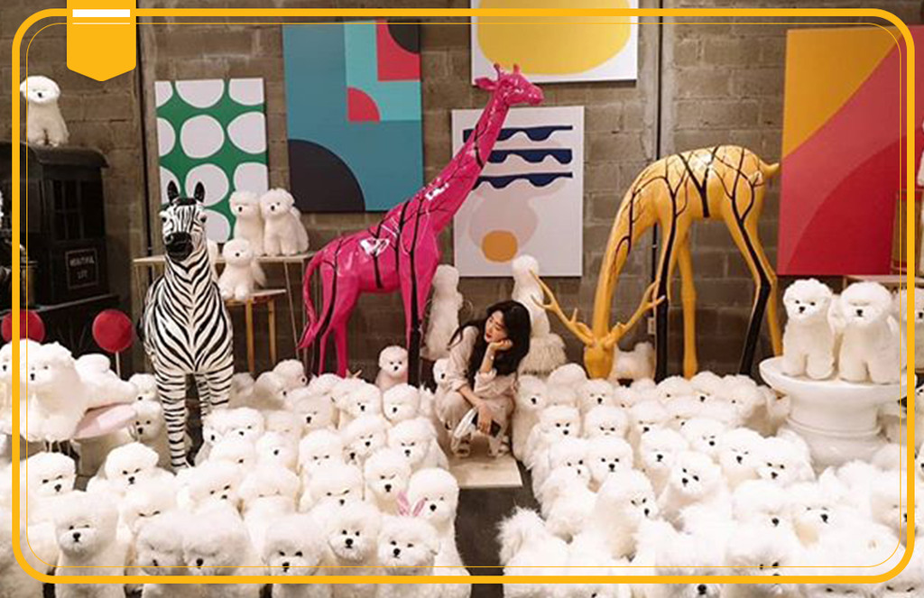 特别是一些大型装饰品前,拍照的客人络绎不绝。按照不同的主题划分区域,会让人联想到摄影棚。因为这种特殊的室内装饰,所以经常被用作MV或电影拍摄地。