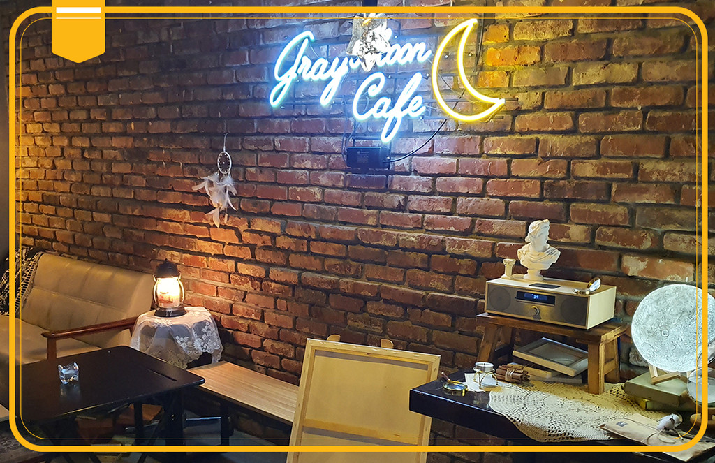 与「Gray Moon」的店名相呼应,咖啡馆内部就像隐藏在夜空中的灰色月亮上的小阁楼。