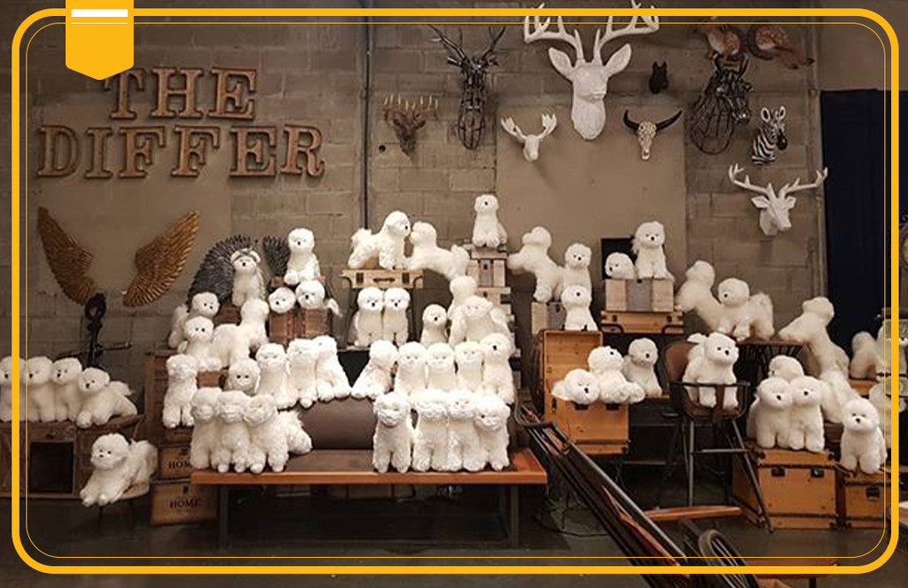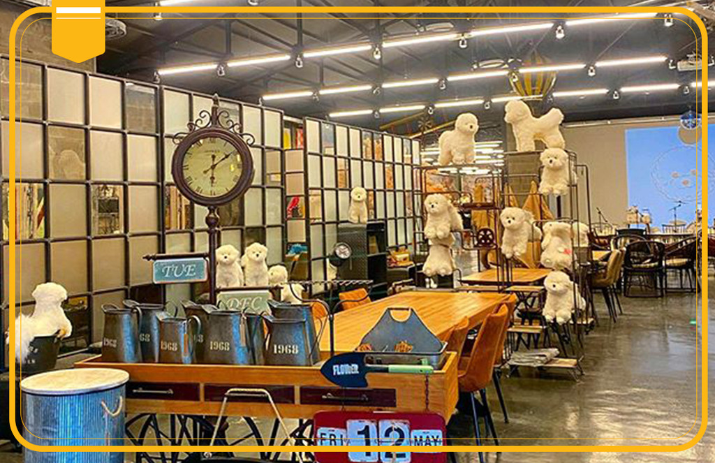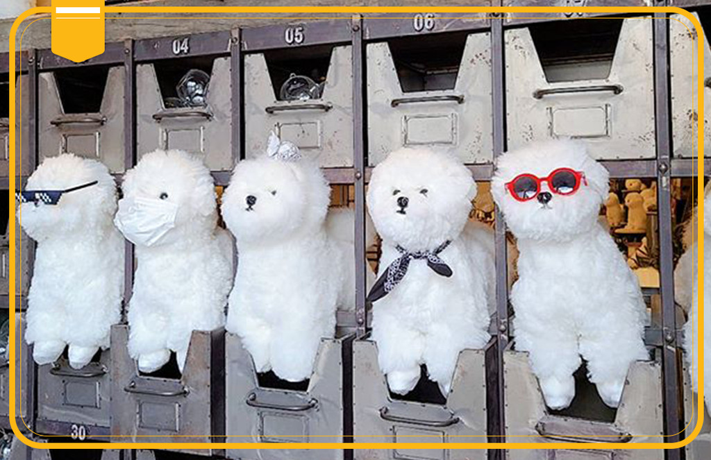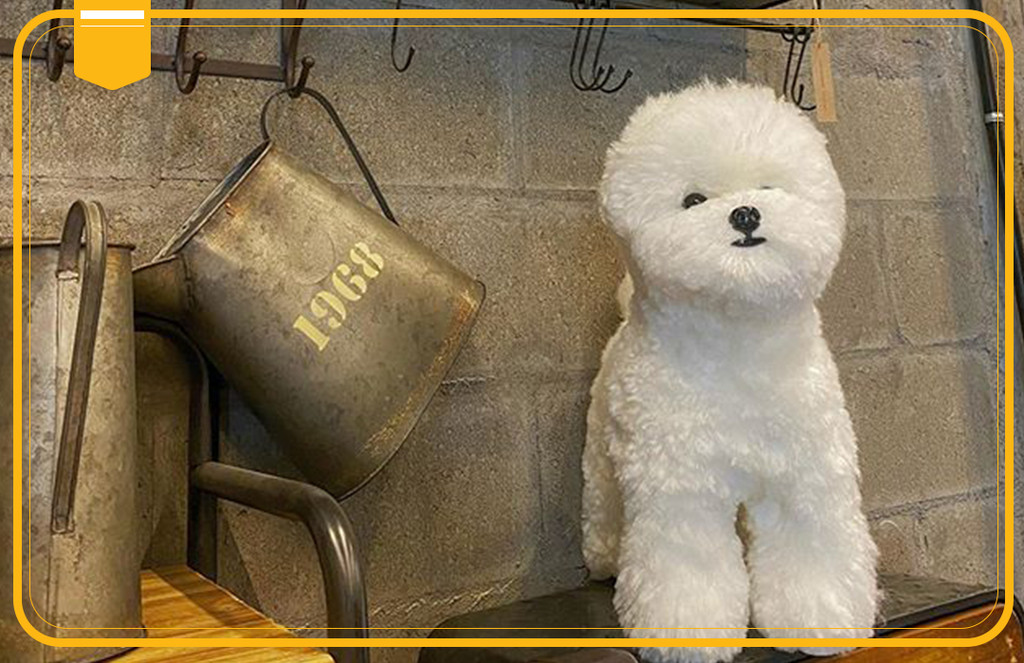 近期的装饰主题是「比熊犬」。咖啡店外部一侧的墙面上画着一只可爱的比熊犬和它的“比熊之家”。室内硕大的展示空间里,摆满了白白胖胖的比熊犬玩偶。根据门口的提示,最近正在进行玩偶展卖活动,收益金的一部分将捐赠给‘流浪狗救助中心’。真的是非常有意义的活动!很有缘分的是,白白软软的比熊犬,和棉花糖也非常相像。