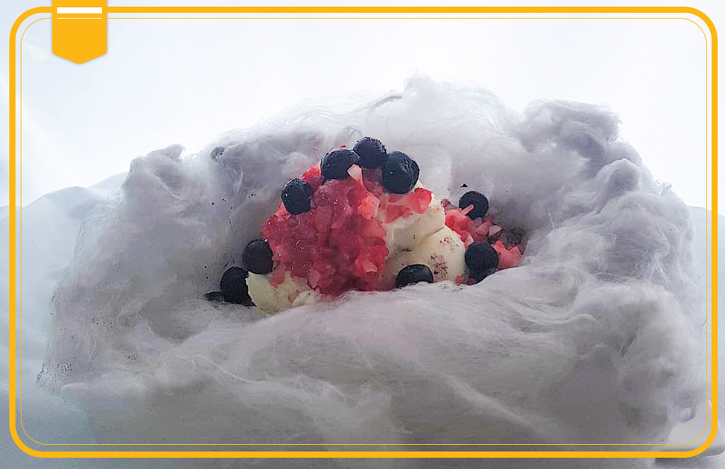 「棉花糖冰激凌」先撕下一小撮棉花糖,然后在上面放上一勺香草冰淇淋,根据个人喜好添加蓝莓、草莓、麦片等即可。一开始觉得棉花糖和冰淇淋一起吃会不会太甜?没想到居然没有很过分的甜味!一起吃的蓝莓、草莓、麦片,能中和甜腻的口感和味道,不觉得腻,就会一直吃下去。如果想尝试棉花糖和冰激凌结合的甜点,推荐「Gray Moon」。