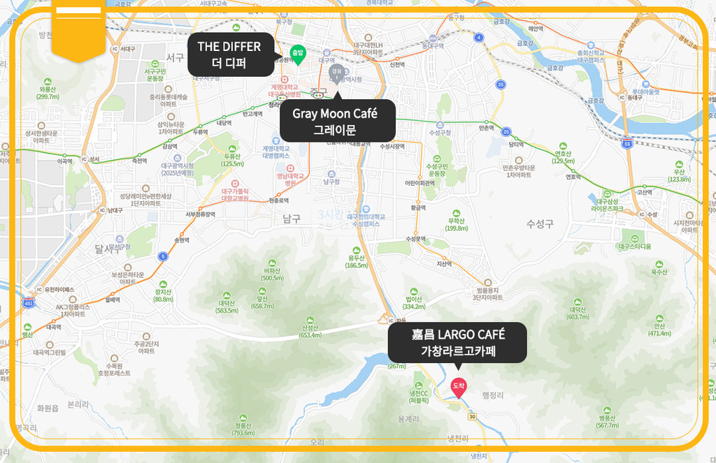 交通: 大邱 地铁③号线 – 凡勿站3号出口 – 出租车9分钟