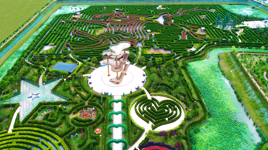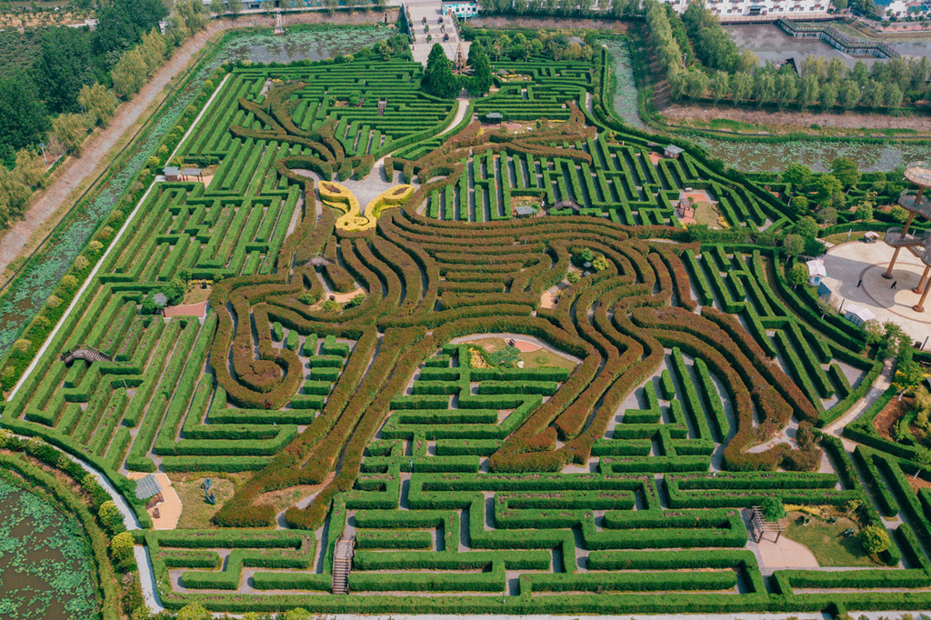 除了常见的圆形迷宫,这里还有一个由4万多株红叶石楠构成的麋鹿造型的迷宫,这个迷宫还荣获了“世界最大的永久性树篱迷宫”和“最长路径的永久性树篱迷宫”两项吉尼斯世界纪录。