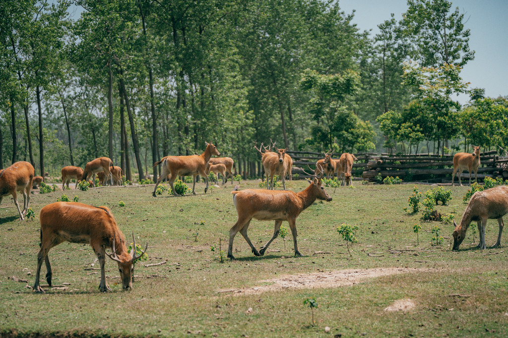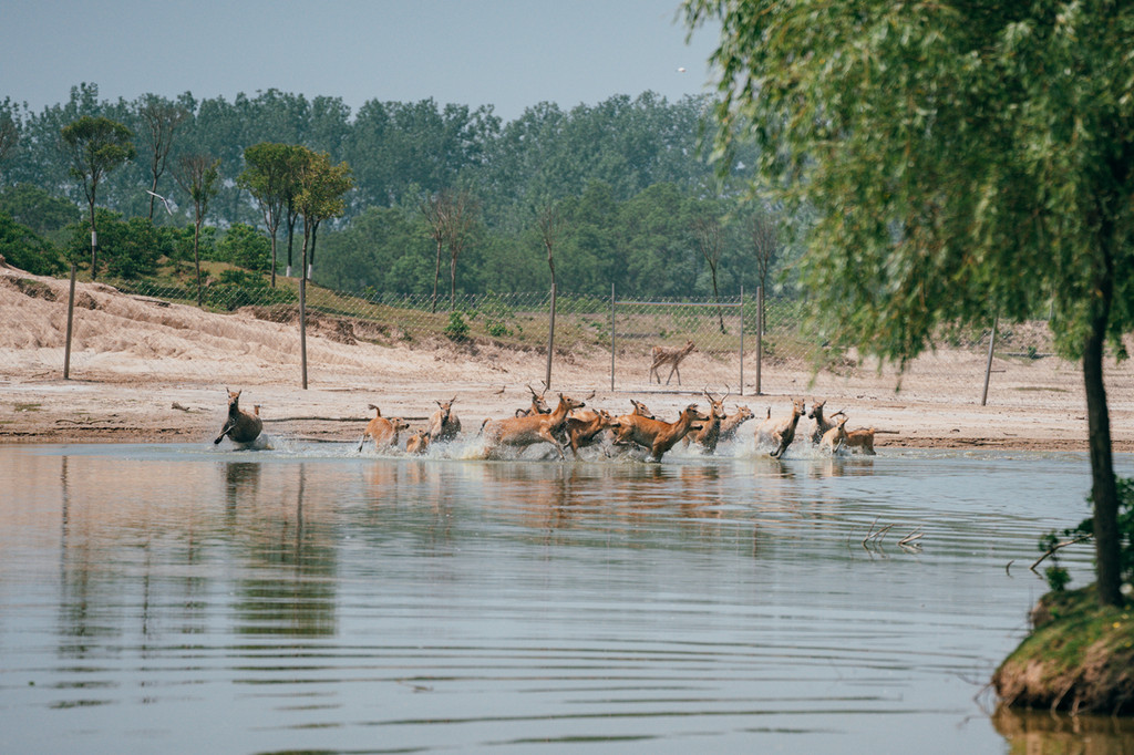 大丰境内的中华麋鹿园是全世界最大的麋鹿栖息地。