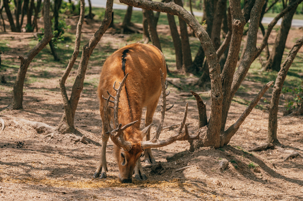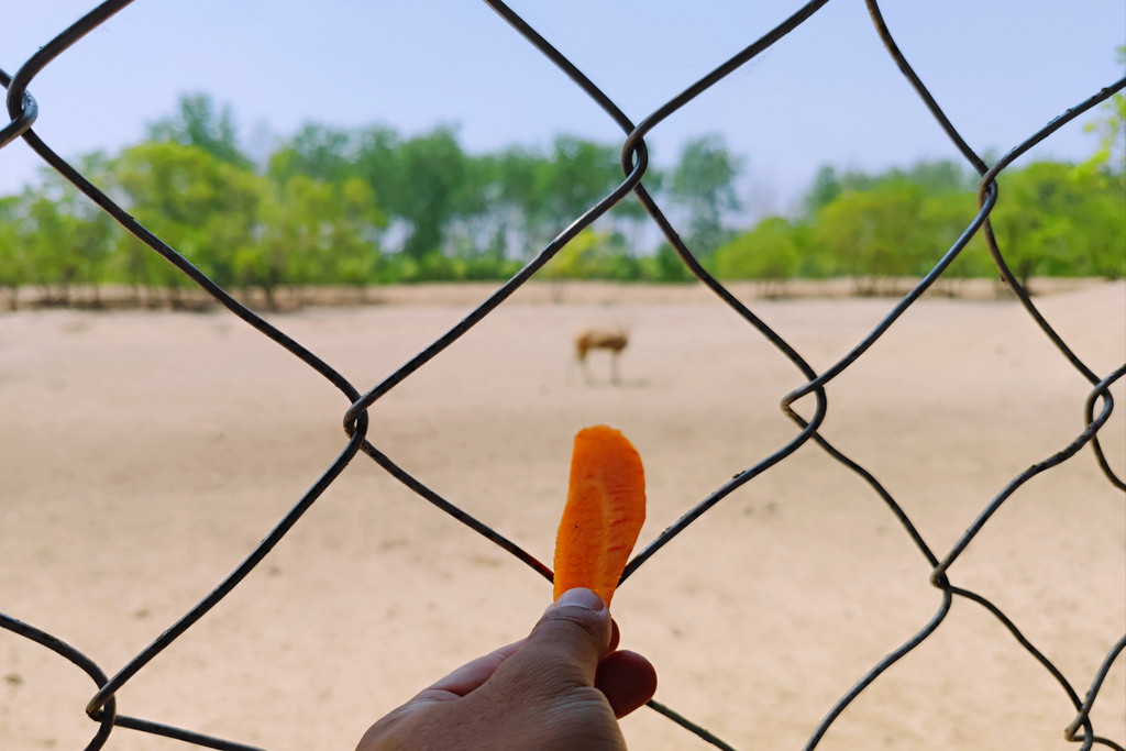 搭乘电瓶车从大门口的一号码头到了二号码头。这里可以用胡萝卜喂麋鹿。但是可能是因为吃饱了,也可能是因为眼神不太好,我在铁网外面等了半天,就是没有麋鹿来吃~
