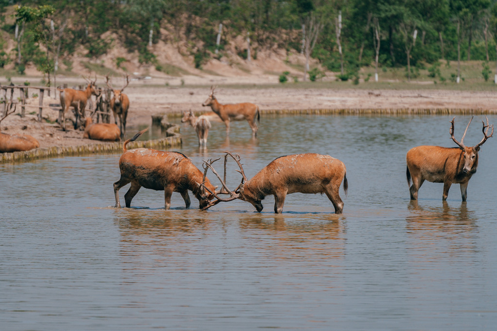 这个古老的物种经历了由盛转衰,到了清朝末年绝迹。在一百多年前被英国购买并繁殖,并在上世纪八十年代将部分个体送回中国 ,才逐渐繁衍到如今的数量。所以称麋鹿是国宝,其实一点也不夸张。